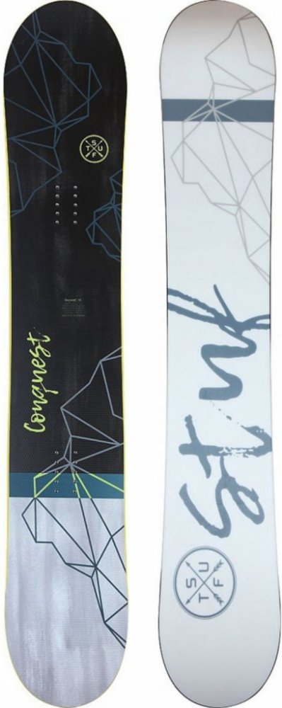 All mountain snowboard STUF Conquest Rocker 3.0, vhodný především pro začátečníky a mírně pokročilé jezdce, má měkké, ale zároveň pevné celodřevěné jádro, odolný povrch Top Sheet a konstrukci sidewall. Tvar snowboardu Twin Tip zaručuje pohodlnou jízdu na obě strany.