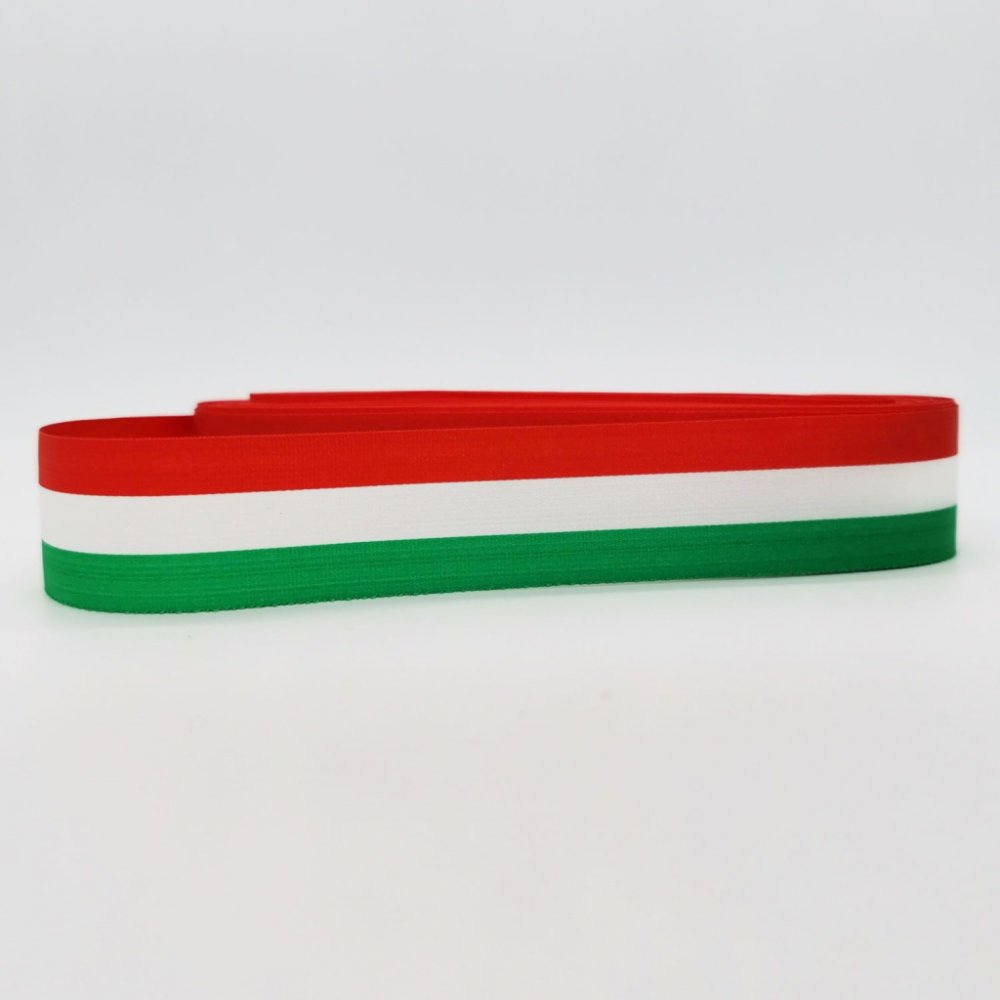 Látková trikolorová stuha v pořadí barev červená / bílá / zelená - tato kombinace odpovídá vlajkám Itálie a Maďarska. Itále je ve svislém pořadí (zleva doprava): zelená, bílá, červená. Maďarsko je přesně obráceně…