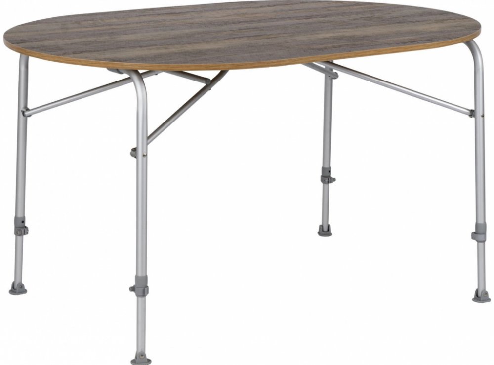 Lehký kempingový stůl Feather Oval od firmy Bo-Camp je vybaven hliníkovým rámem, výškově nastavitelnými nohami a se vzhledem dřeva. Extrémně lehký, ale velmi stabilní kempingový stůl Feather Oval značky Bo-Camp s deskou se vzhledem dřeva. Deska stolu je vyrobena ze skelného vlákna s plastovým okrajem, který je odolný vůči teplu a vodě. Vybavena hliníkovým rámem, výškově nastavitelnými nohami (59-7...