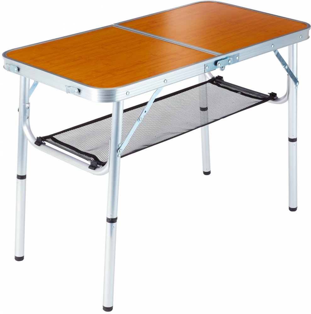 Potřebné drobnosti můžete mít i v kempu vždy po ruce díky praktické odepínatelné odkládací síťce, již naleznete pod deskou stolu. Díky použitému hliníku dosahuje stolek hmotnosti pouhých 2,75 kg. Nosnost pak činí až 30 kg, což je na většině akcí jistě dostatek pro vše potřebné.