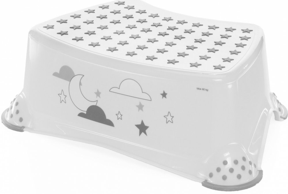 Stupínek pro malé děti k umyvadlu ak WC s protiskluzovou úpravou pomáhá bezpečně si osvojovat základní hygienické návyky. Protiskluzová ochrana podnoží slouží ke stabilitě židle Protiskluzová ochrana na povrchu stupínku snižuje riziko uklouznutí Maximální hmotnost zátěže je 80 kg Vyrobeno v EU