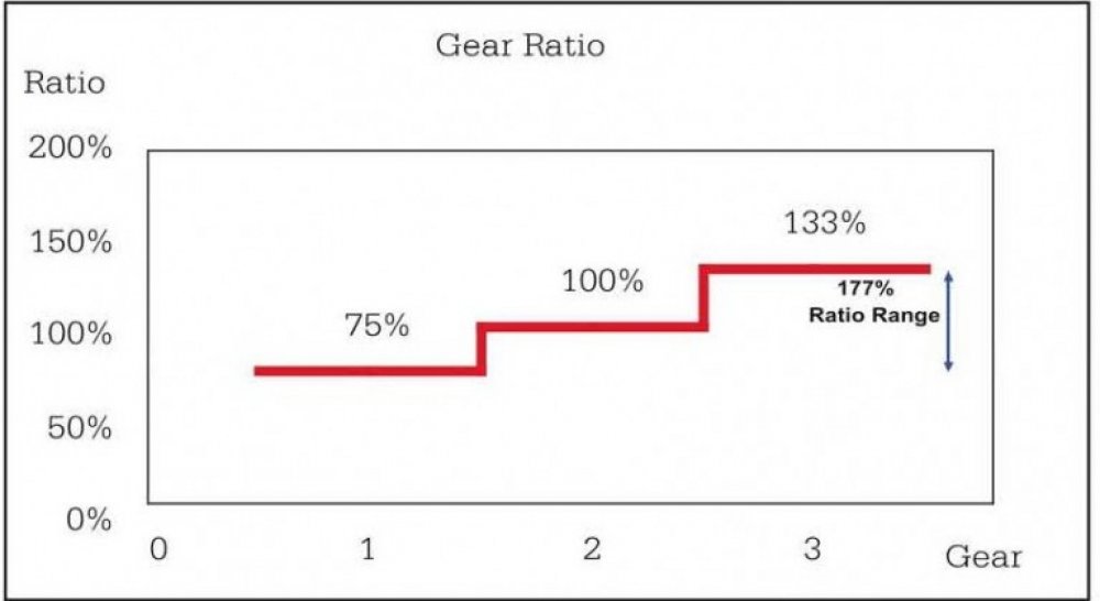 3-rychlostní náboj Sturmey-Archer CS-RF3 s rozsahem 177%