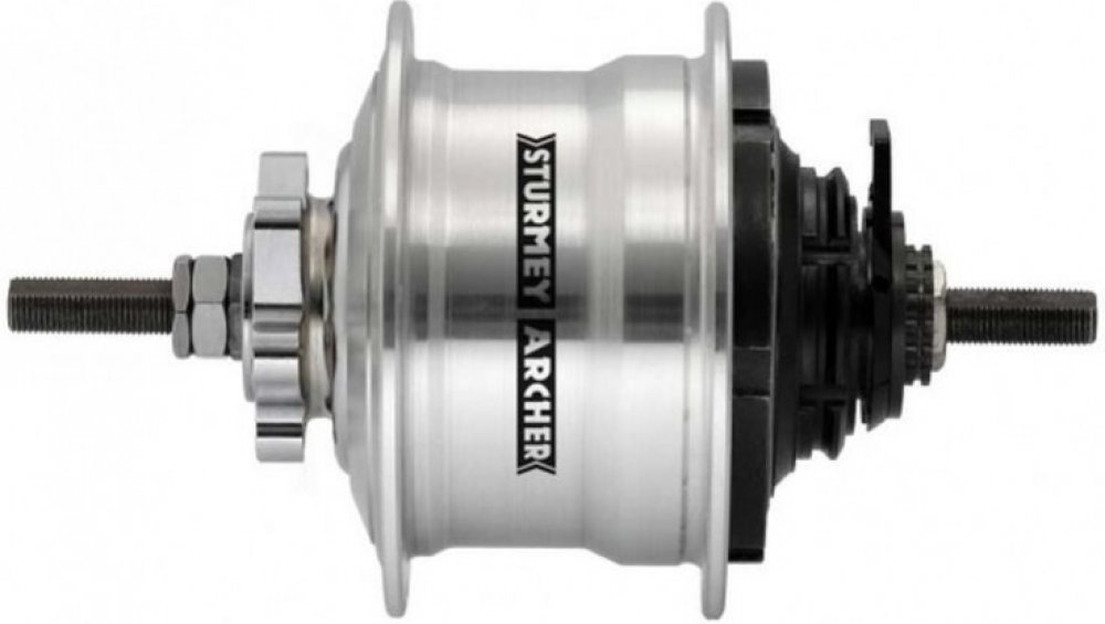 5-rychlostní volnoběžný náboj Sturmey-Archer RX-RK5 se zesílenou konstrukcí (např. pro e-bike) s rozsahem 243% a nástavcem pro kotoučovou brzdu.
