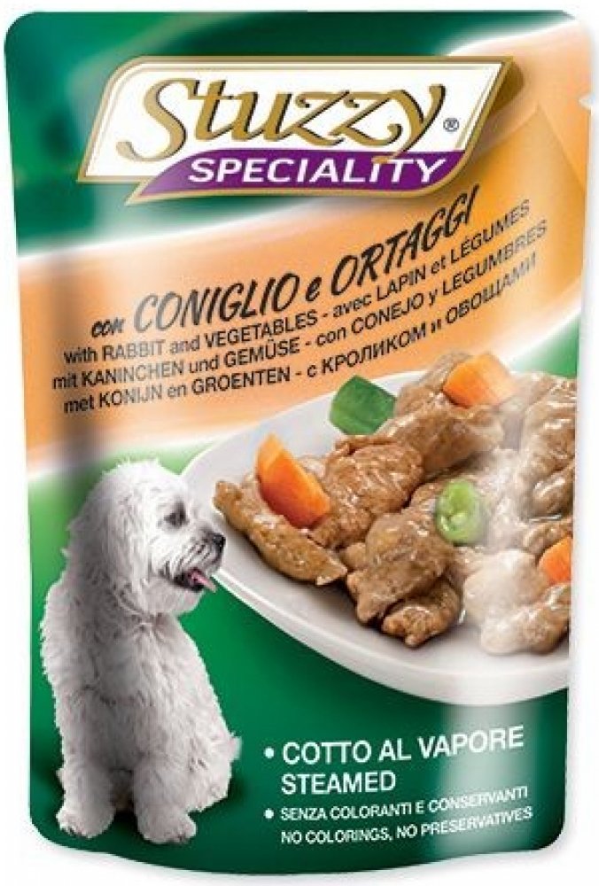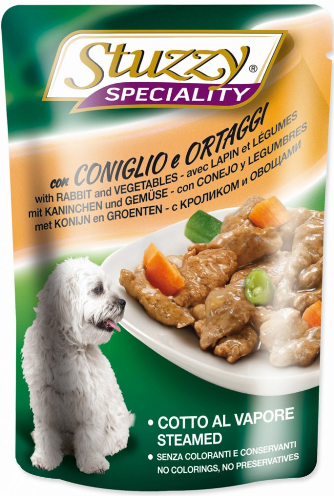 Whitebridge Pet Brands Stuzzy dospělí králičí maso ve šťávě 100 g prémiové malé a střední trávicí ústrojí se zeleninou Itálie 4 % 0.3 % 2 %