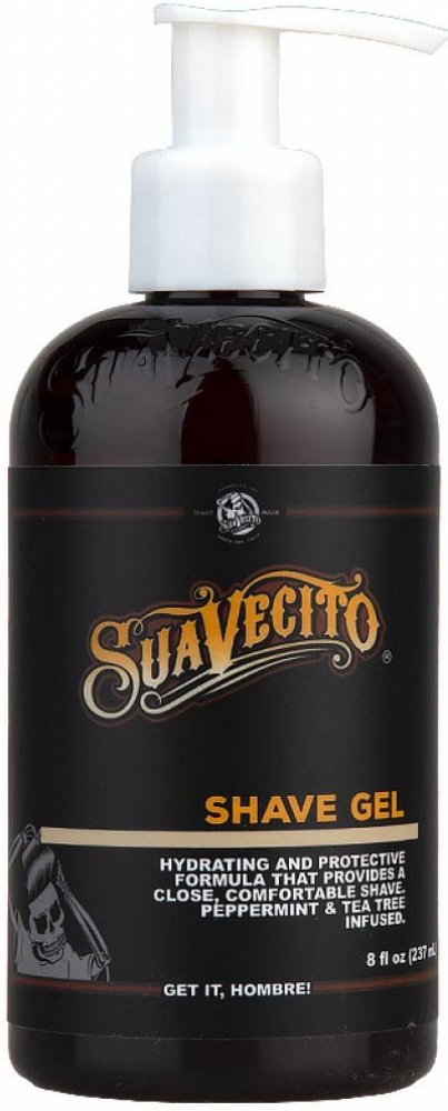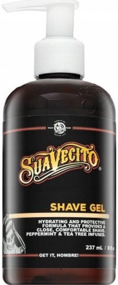 Transparentní gel na holení Suavecito pomůže jednoduše oholit vousy i chloupky. Gel je šetrný k pokožce, kterou po použití zanechá vláčnou a hydratovanou. Další výhodou tohoto transparentního gelu je ta, že díky absenci pěny uvidíte, kde přesně holit kontury. Obsažená máta peprná a tea trea olej se postarají o mírný chladivý efekt a příjemnou osvěžující vůní.Použití: vodou navlhčete místo, které budete holit. Pumpičkou si nadávkujte trochu gelu a místo k holení promasírujte gelem. Po té můžete holit.Obsah 237 ml. Vyrobeno v USA.