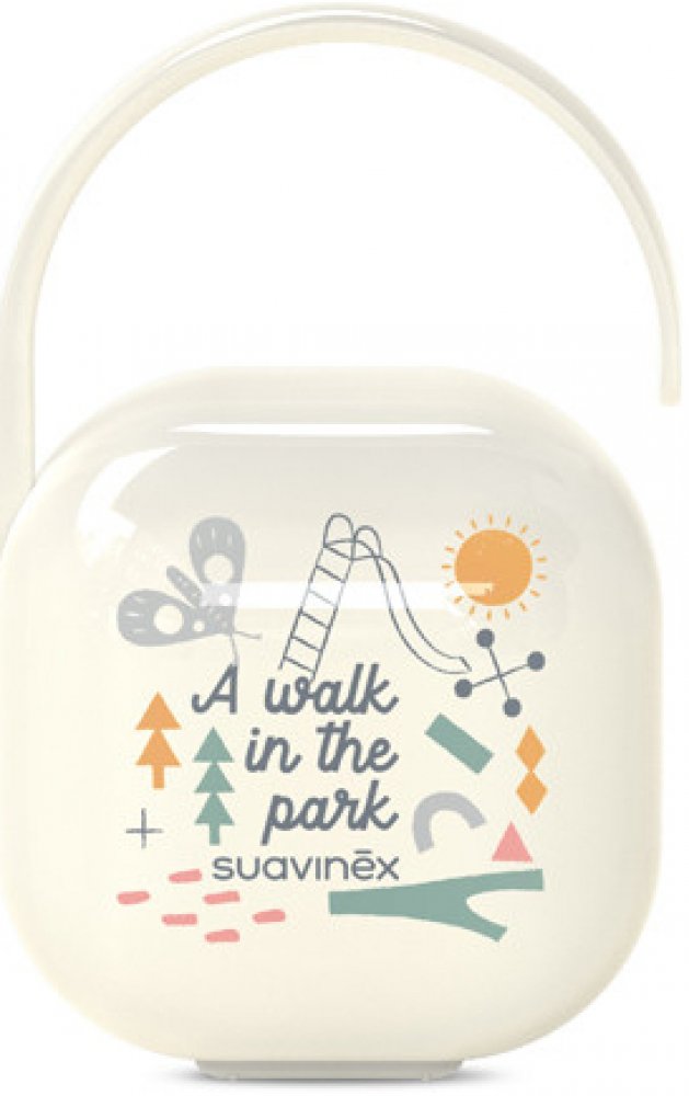 Podrobnosti o produktu 3800545W2 Krabička na jedno šidítko značky Suavinex kolekce WALK s veselým potiskem dudlík dokonale chrání při jeho přepravě, aby se neztratil ani neušpinil.