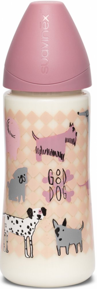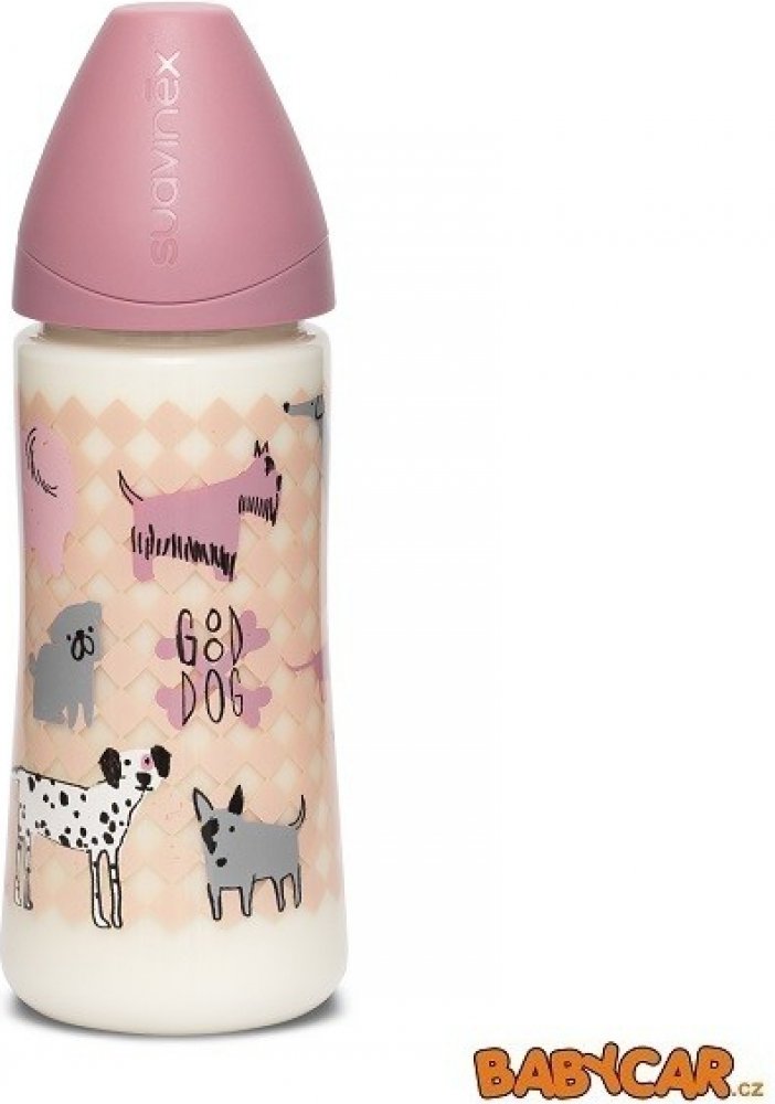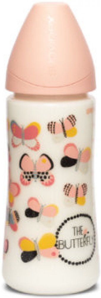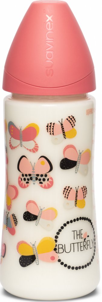 Suavinex láhev kulatá savička silikon růžová motýl 360 ml