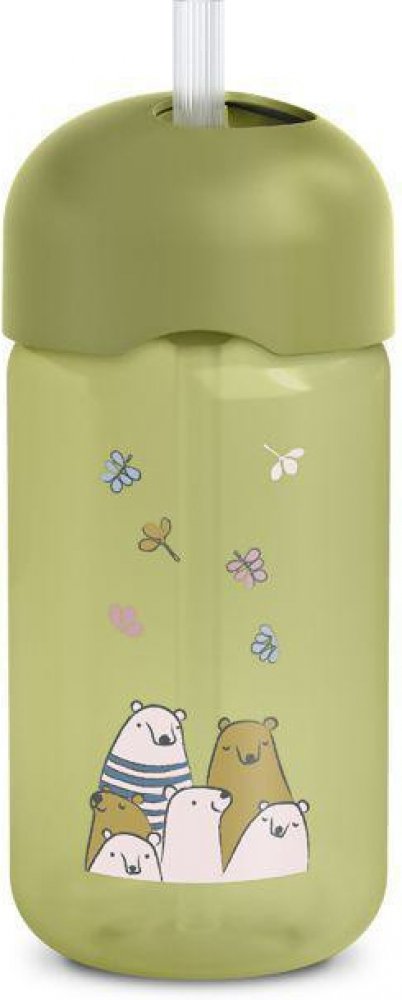 Suavinex lahvička s brčkem Bear 340 ml zelená