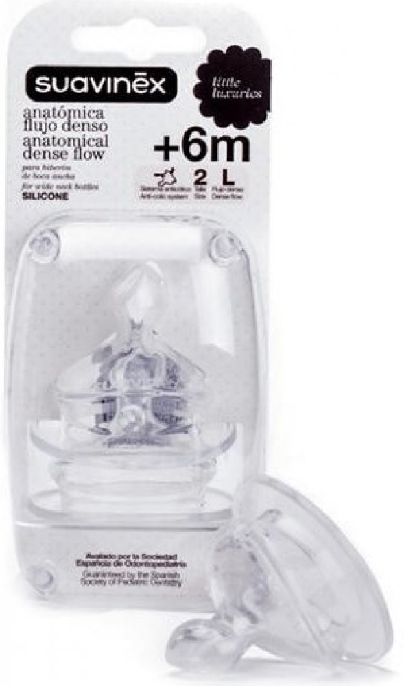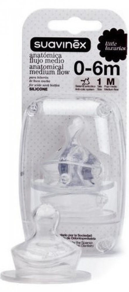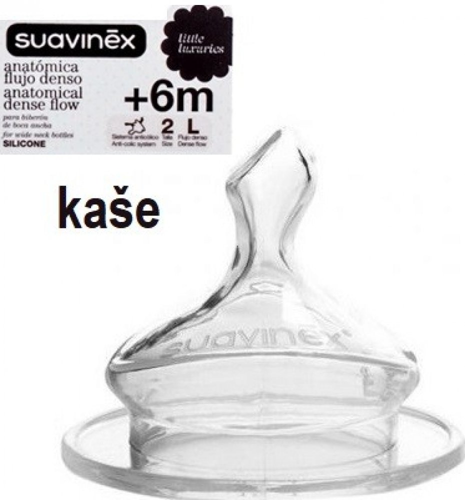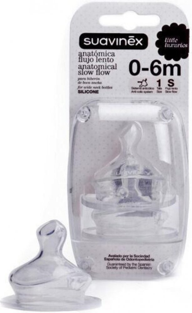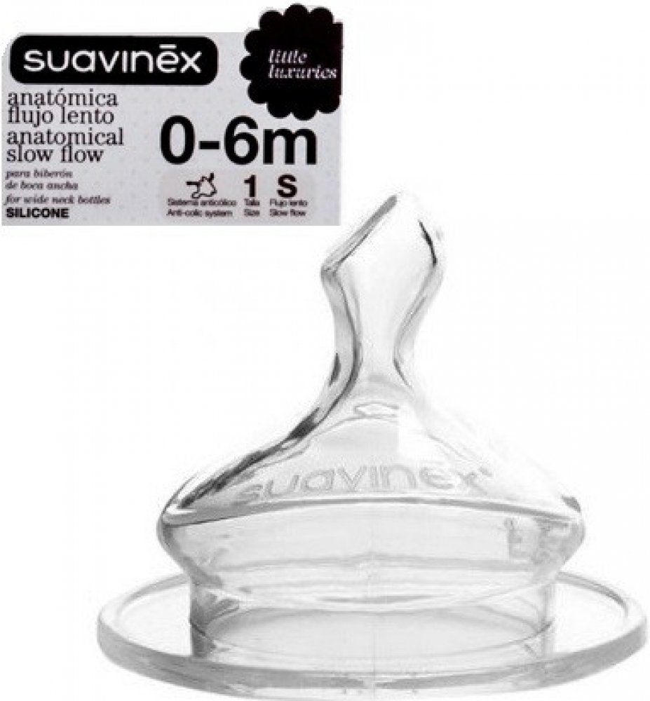 U výrobků Suavinex máte rovněž možnost volby materiálu saviček - latexové/silikonové a možnost výběru velikosti průtoku savičky - S, M a L (od nejmenšího po největší).