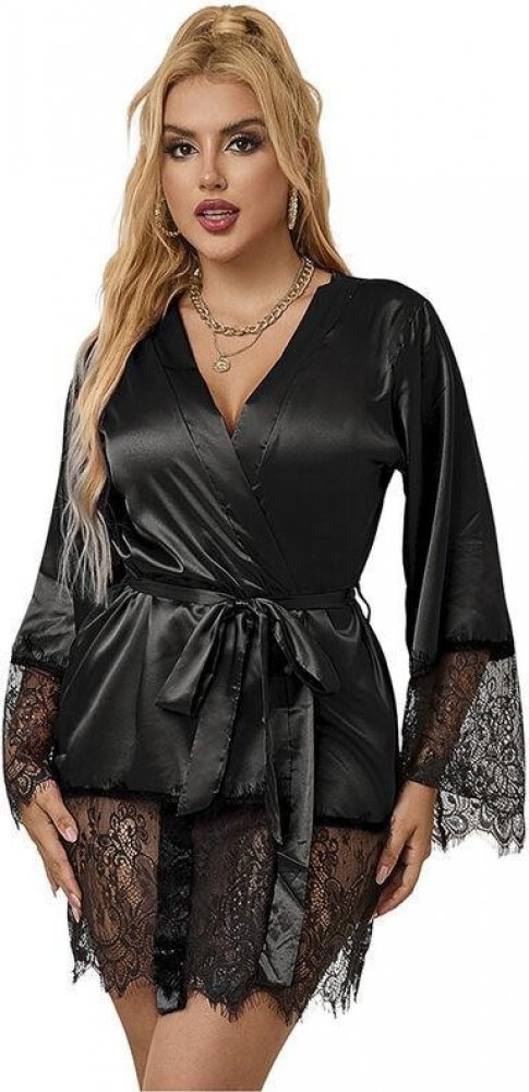 Připravte se na večer plný vášně s černým župánkem s krajkou od značky Subblime. Tento župan byl navržen tak, aby v sobě spojoval eleganci a smyslnost, díky čemuž se budete cítit neuvěřitelně přitažlivě. Květinová krajka v kombinace s neprůhledným saténem v černé barvě dodává nádech sofistikovanosti a smyslnosti a vy se budete cítit neodolatelně sexy. Župánkem můžete doplnit spodní prádlo nebo si jej vzít na nahé tělo. Tanga jsou součástí balení. Župan je zavinovací bez zapínání a se zavazovacím páskem. Jakmile pásek rozvážete, župánek se svůdně rozevře. Doporučujeme zavazovat na mašli, kterou lze rozvázat jedním zatáhnutím za konec. Župánek je vyroben ze 100 % z polyesteru. Materiál je měkký a příjemný. Velikost S/M odpovídá EU 36/38, velikost L/XL odpovídá EU 40/42.
