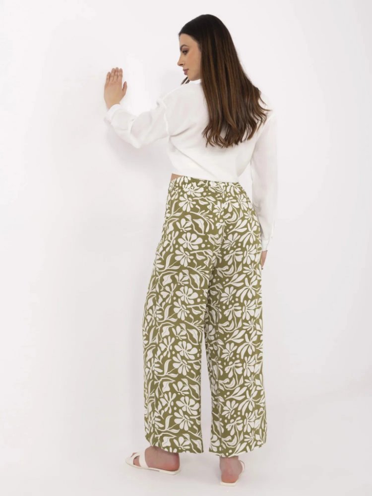 Kalhoty ve velikosti S: šířka pasu - 34 cm (v rozloženém stavu), šířka pasu - 48 cm (v nataženém stavu), výška sedu - 37 cm, šířka boků - 54 cm, celková délka - 101 cm.