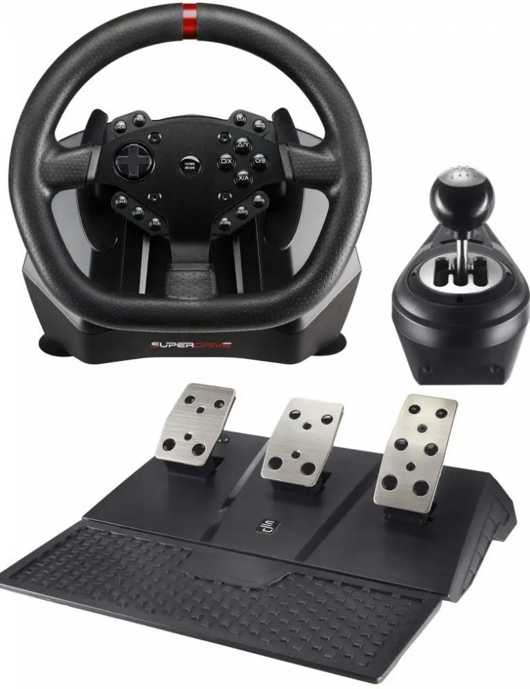Závodní volant SUPERDRIVE GS950-X s pedály, spojkou i s řadicí pákou Pro náruživé hráče automobilových simulátorů zde máme připravený volant SUPERDRIVE GS950-X. Je kompatibilní s PS4, Xbox Series X/S a Xbox One. Volant disponuje otáčením v rozmezí 270° a 900°.