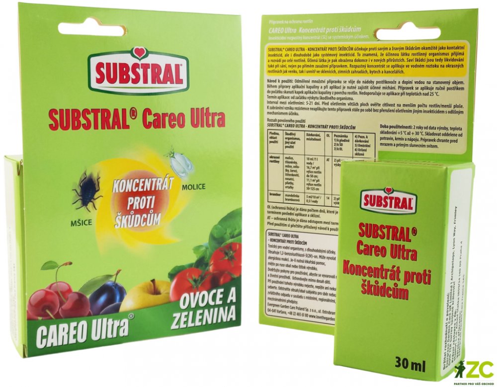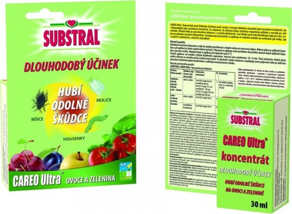 Careo Ultra koncentrát proti škůdcům účinkuje proti savým a žravým škůdcům okamžitě jako kontaktní insekticid, ale i dlouhodobě jako systémový insekticid. To znamená, že účinnou látku rostlinný organismus přijímá a rozvádí po celé rostlině. Účinná látka je pak obsažena dokonce i v nových přírůstcích. Saví škůdci jsou tedy likvidováni také při sání, nejen po přímém zasažení přípravkem. Emulgovatelný koncentrát se aplikuje ve vodném roztoku na rostlinách jak venku, tak i uvnitř ve sklenících, zimních zahradách, bytech a kancelářích. Přípravek se aplikuje ručně postřikem.