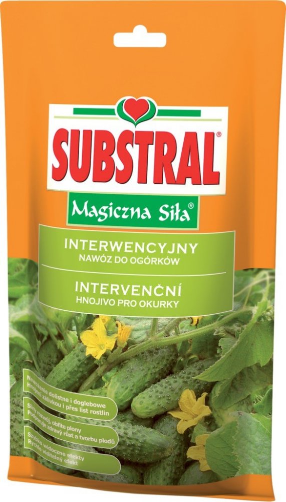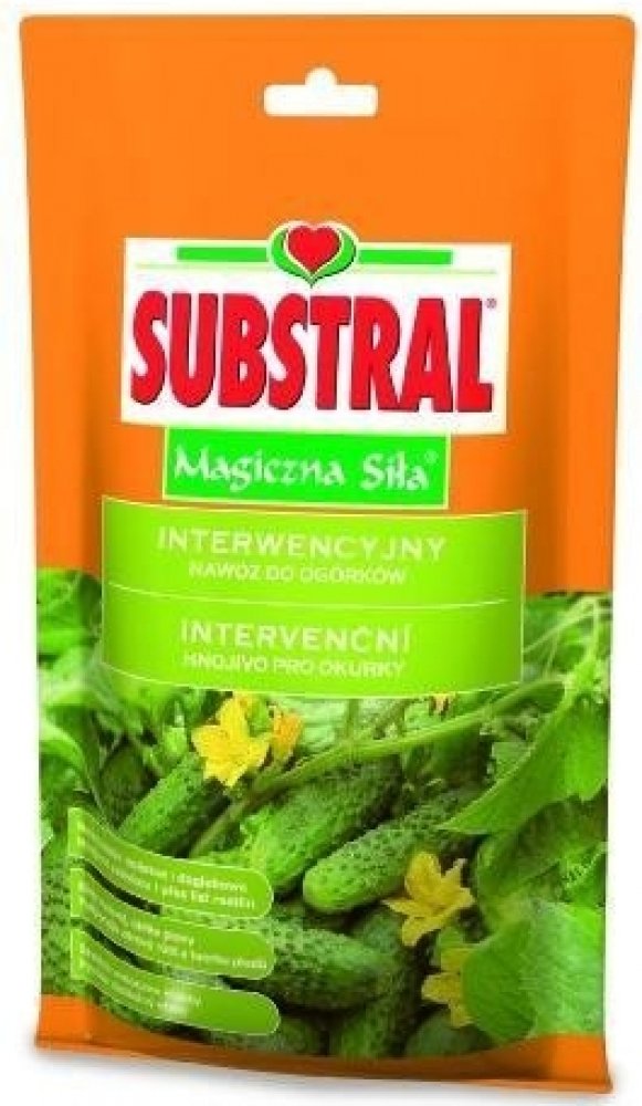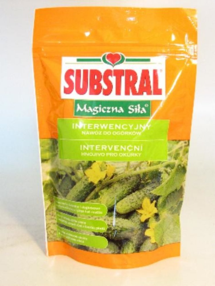 Vodorozpustné hnojivo pro okurky. Podporuje tvorbu plodů všech druhů okurek. Použití: Substral krystalické pro okurky se používá pro hnojení zálivkou i přes list rostlin. Na 350 L zálivky Dávkování: