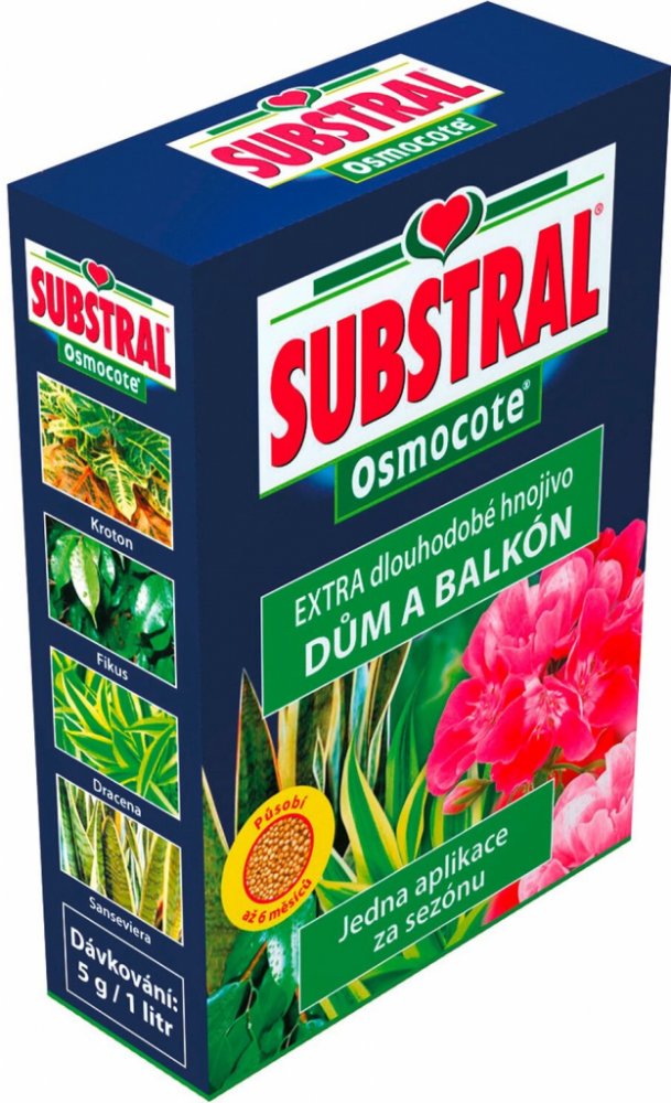 Substral Osmocote je hnojivo s postupným uvolňováním živin, které po jediné aplikaci zajistí stálou výživu rostlin každodenně v malých a "dobře stravitelných" dávkách po celé vegetační období bez rizika jejich spálení nebo přehnojení. Živiny se z granulí uvolňují do půdy jen v závislosti na vlhkosti a teplotě půdy po dobu až 6-ti měsíců, přičemž 80 - 90 % živin je spotřebováno rostlinou.