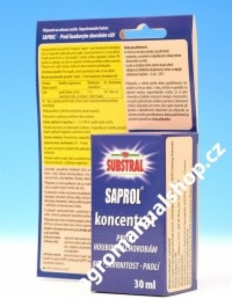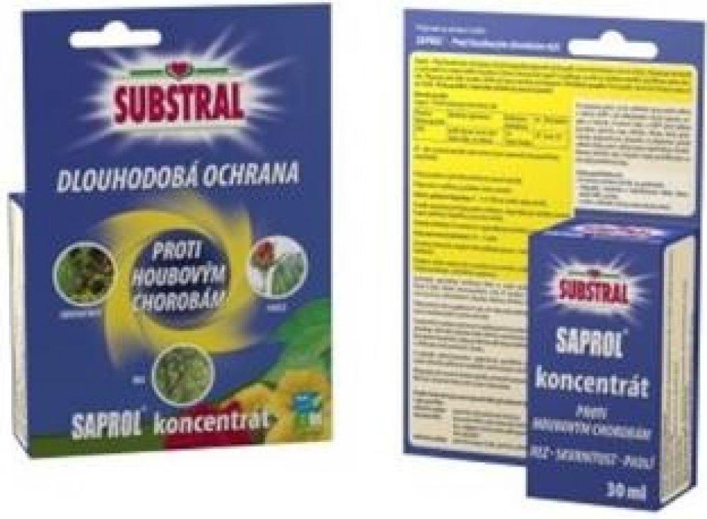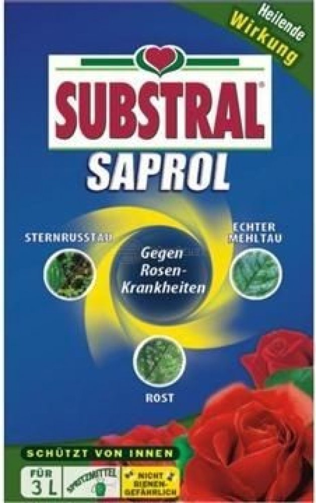 Substral Saprol (koncentrát) 30 ml SUBSTRAL Saprol je fungicidní přípravek proti houbovým chorobám na ochranu růží proti padlí, černé skvrnitosti a rzi na růžích. Charakteristika: Kontaktní fungicid Účinná látka: triticonazole 10g/l Působení přípravku: SAPROL působí preventivně a při použití v raném stádiu napadení i kurativně. Aplikuje se na růže ve vodním roztoku postřikem nebo rosením. Příprava aplikační kapaliny: Odměřené množství přípravku vlijeme do nádrže aplikátoru naplněné do poloviny vodou a po rozmíchání doplníme na požadovaný obj