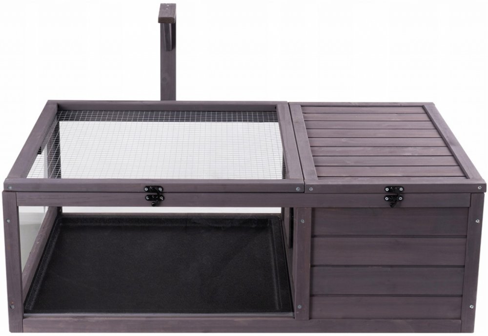 Výběh pro želvy o rozměrech 965 x 610 x 330 mm (38 x 24 x 13 palců) nabízí soukromou spací zónu se střechou a veřejně přístupný pozorovací bod s velmi průhledným bočním panelem z ABS plastu. Uzamykatelná horní krytka s síťkou o vysoké hustotě účinně zabraňuje úniku zvířat. Výběh vhodný pro různá malá zvířata.