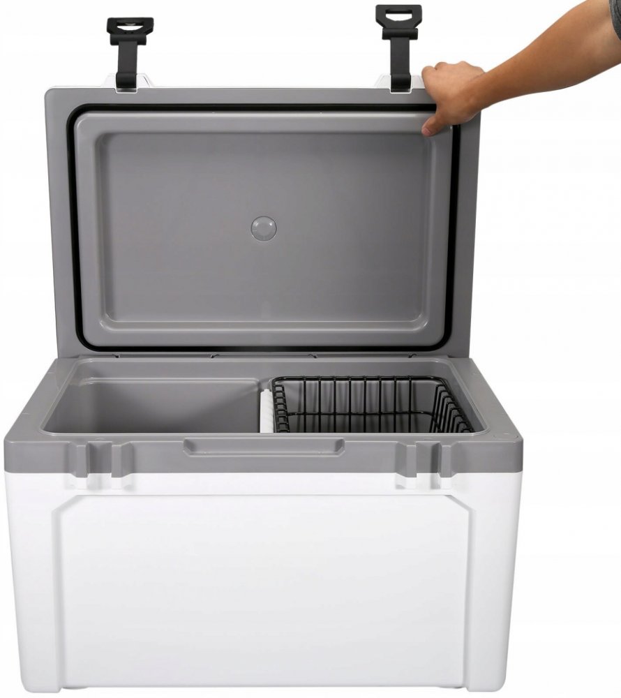 Náš chladicí box na led je vybaven vestavěným otvírákem na pivo a košíkem na suché produkty se separátorem. Oddělení nápojů od suchých produktů je hračka!