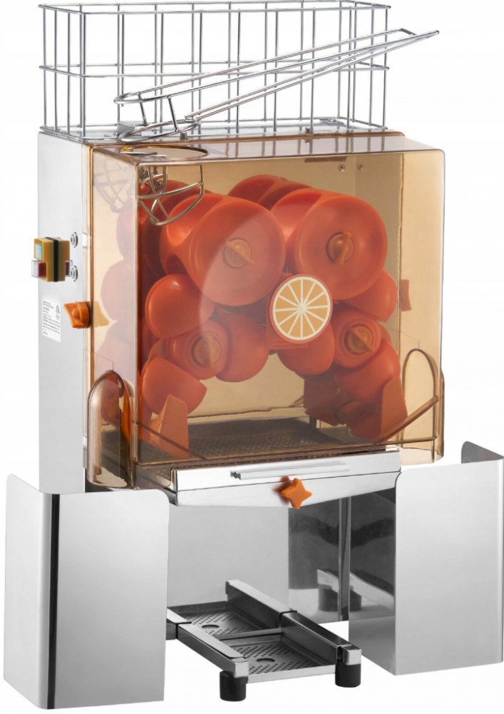 Jednoduše umístěte umyté pomeranče na vodítko, zapněte vypínač (vypínač zůstává zapnutý pro nepřetržitý provoz) a vychutnejte si čerstvou pomerančovou šťávu. Tento jednoduchý proces výrazně zvyšuje efektivitu práce a umožňuje nepřetržitou produkci pomerančové šťávy.
