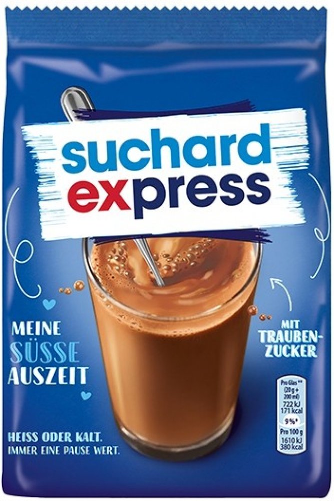 Suchard Kakao express je lahodný čokoládový začátek dne. Nápoj v prášku chutná dobře s teplým i studeným mlékem a díky glukóze poskytuje rychlé zvýšení energie. Vyzkoušejte toto lahodné kakao, kde můžete opravdu ochutnat lásku k čokoládě.
