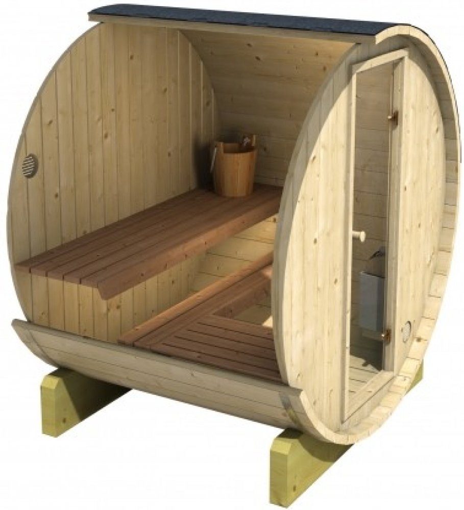 Sudová sauna - Na toto zboží se z důvodu delších dodacích lhůt výrobců musí bohužel déle čekat. Doporučujeme vybrat z alternativních produktů, které jsou skladem. Venkovní sudová sauna bude dokonalým šperkem vaší terasy. Je vyrobena ze severského smrku, který má vyšší hustotu dřeva a odolává lépe nepříznivému počasí. Součástí sauny jsou i elektrická saunová kamna HARVIA Vega Compact BC35. Sauna je dodávána včetně lavic, podlahy, šindele, ventilace, skleněných dveří, nerezových obručí, dvou podpěr a odkloněného ukončení střechy po stranách.