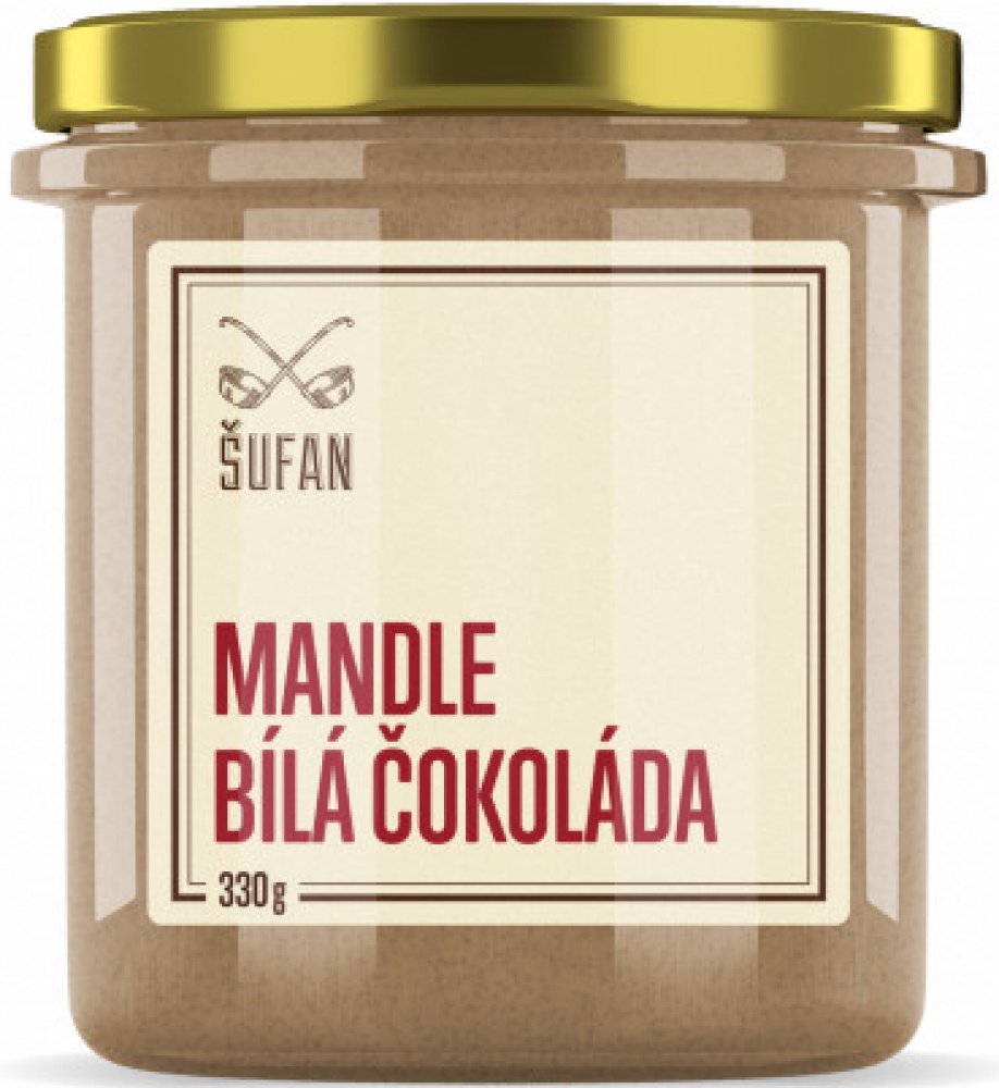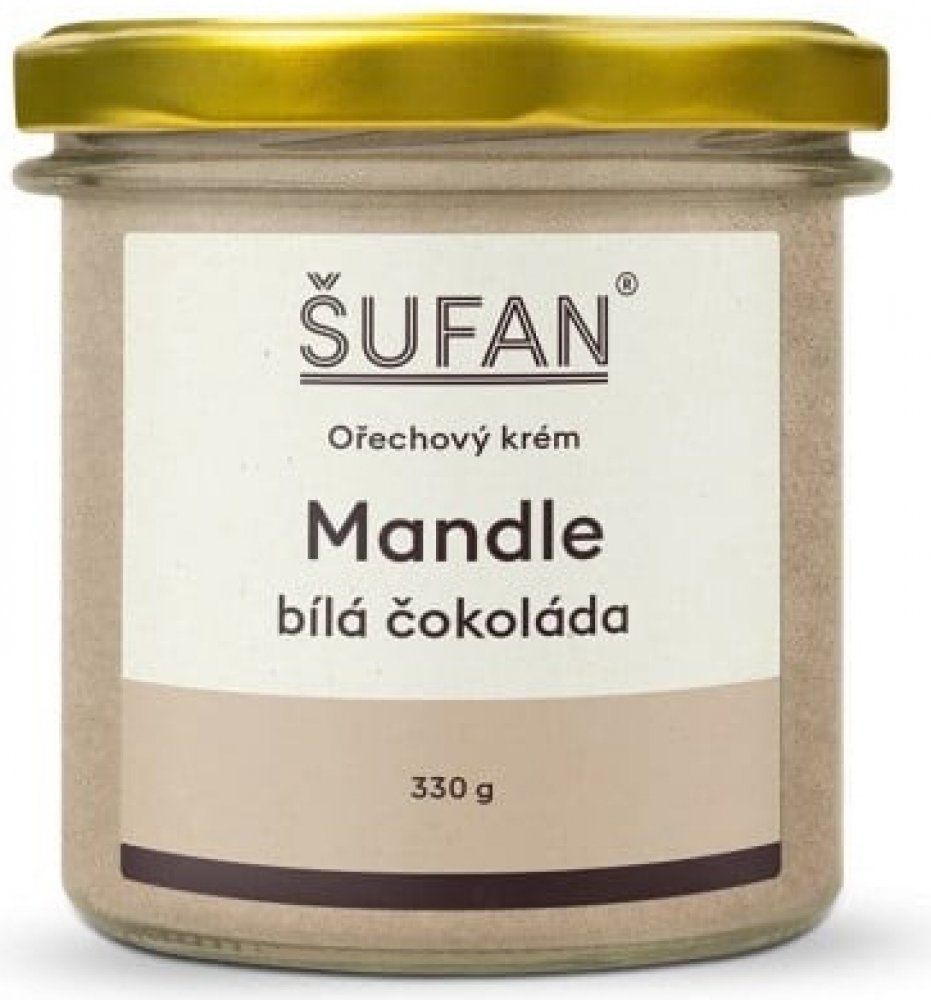 Šufan Ořechové máslo Mandle bílá čokoláda dóza sklo 330 g