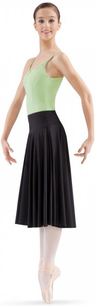 Kruhová sukně pod kolena s elastickým pasem. Od pasu směrem k bokům širší lem. Skvělá univerzální sukně vhodná jak pro jakékoliv taneční tréninky, tak i pro společenské akce.