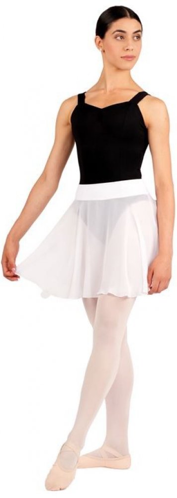 Základní šifonová sukýnka se širokým pasem. Jednoduché provedení, v bílé, růžové a černé barvě. Materiál je lehoučký a tančivý. Ideální pro balet, vhodná ale i pro tréninky společenských tanců při kombinaci např. s černými legínami. Sukýnka je lehká a nebude vás omezovat v žádném pohybu.