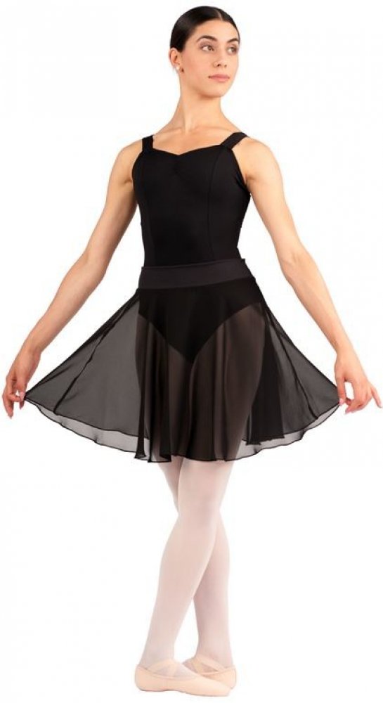Základní šifonová sukýnka se širokým pasem. Jednoduché provedení, v bílé, růžové a černé barvě. Materiál je lehoučký a tančivý. Ideální pro balet, vhodná ale i pro tréninky společenských tanců při kombinaci např. s černými legínami. Sukýnka je lehká a nebude vás omezovat v žádném pohybu.