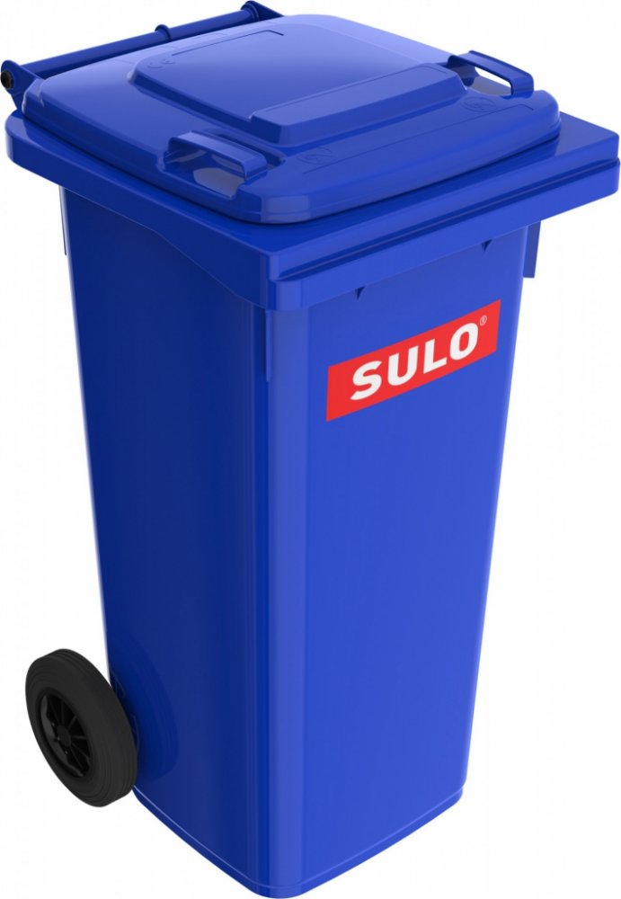 Popelnice plastová SULO, s kolečky pro snadnou manipulaci, objem nádoby 120 lit, barva modrá, odstín RAL 5023. Nádoba je vyrobena z vysoce odolného HDPE plastu, její předností je snadná údržba a dlouhá doba životnosti. Nádoba často ani po 10 letech nejeví známky významného opotřebení.