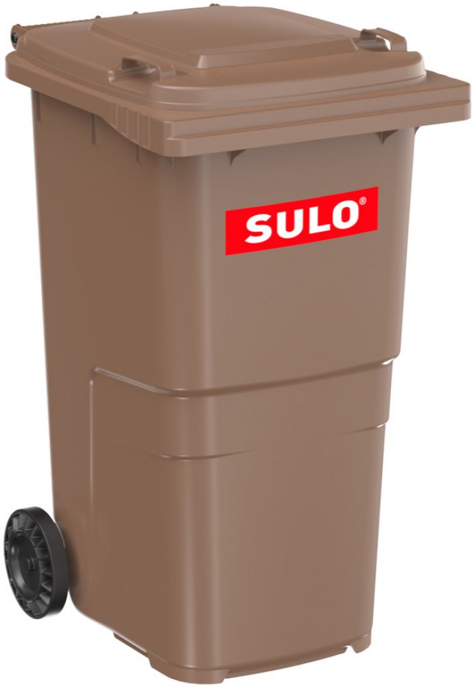 Popelnice plastová SULO, s kolečky pro snadnou manipulaci, objem nádoby 240 lit, barva hnědá, odstín RAL 8025. Nádoba je vyrobena z vysoce odolného HDPE plastu, její předností je snadná údržba a dlouhá doba životnosti. Nádoba často ani po 10 letech nejeví známky významného opotřebení.