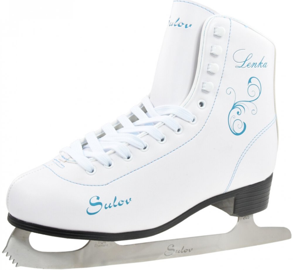 Dámská zimní brusle s jemným potiskem. Bota s klasickým šněrováním je vyrobená ze syntetické kůže. Nerezový nůž.