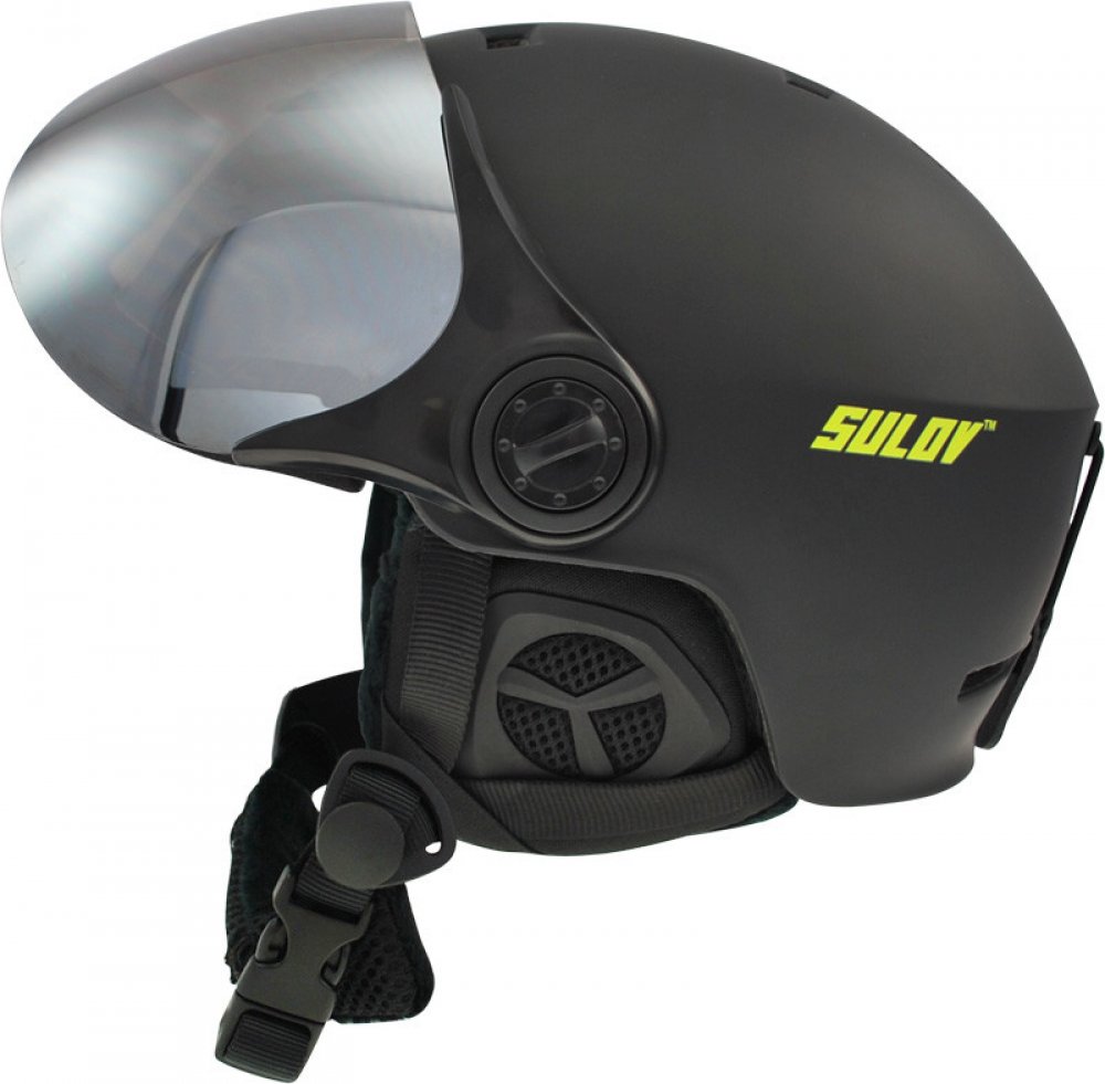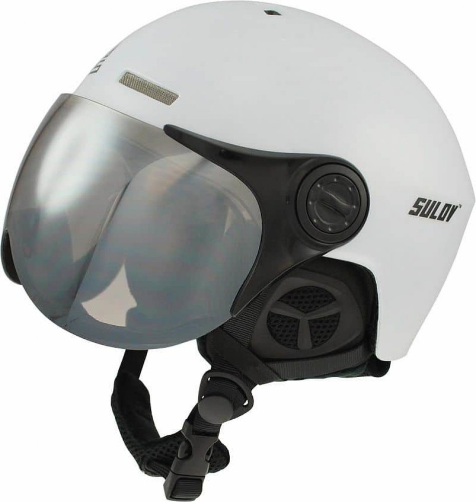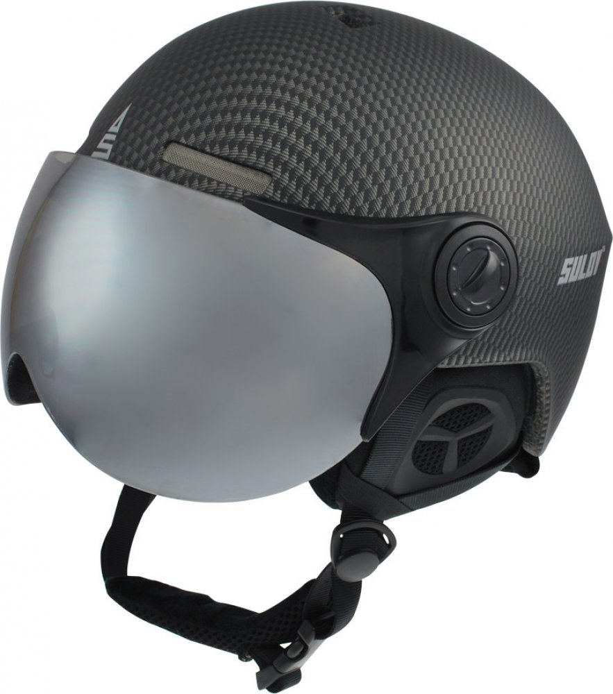 Jedinečná lyžařská přilba s odnímatelným ochranným štítem proti nepříznivému počasí.