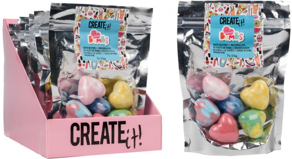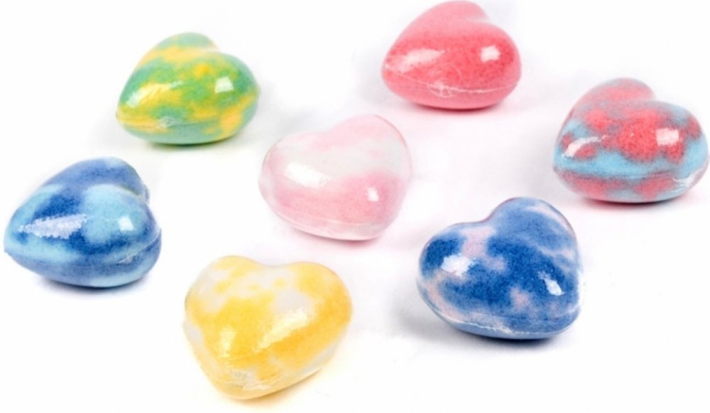 Šumivé bomby do vany – srdíčka do koupele. Každý sáček obsahuje 7 bomb do koupele ve tvaru srdíček Naplňte vanu vodou a poté na dno umístěte koupelovou bombu. Sledujte, jak koupelová bomba začne bublat! Voda z koupele se nejen promění v zářivé barvy, ale také opravdu krásně voní! Dermatologicky testováno, odpovídá normám EU.