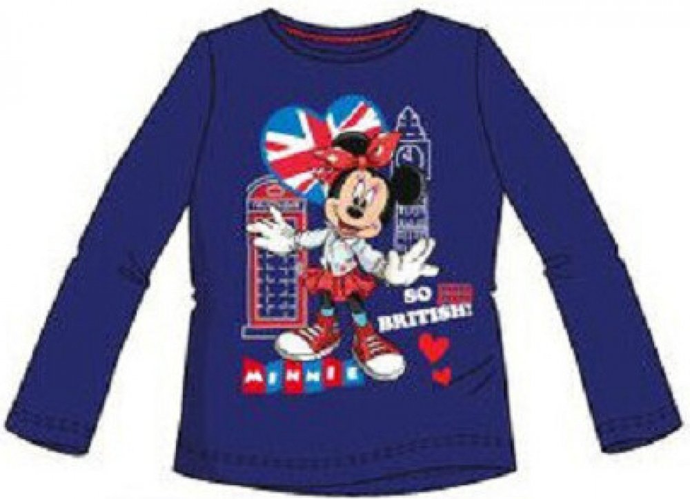 Roztomilé dívčí tričko z nové kolekce Disney s motivem Minnie Mouse. Tričko má dlouhé rukávy, výstřih je ukončen do oblouku. Gramáž bavlny je 160g/m2.