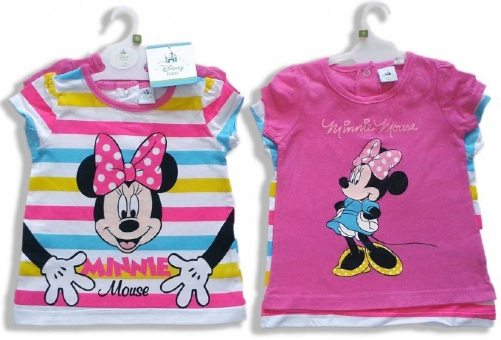 Kojenecké trička 2 ks hladké a s proužky, potisk Minnie Mouse. Příjemná 100% bavlna na zádech u krku dva cvočky.