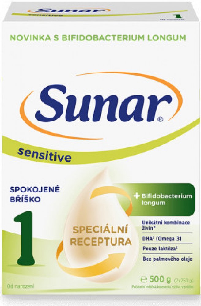 Kojení je pro miminko nejlepším způsobem výživy. Pokud však kojení není možné, Sunar nabízí kojeneckou mléčnou výživu s probiotiky pro miminka od narození, určena pro citlivé bříško vašeho děťátka. Jedná se o unikátní kombinaci látek podle vzoru mateřského mléka s obsahem bakterií Bifidobacterium longum, které se přirozeně nacházejí ve střevním mikrobiomu kojených dětí.