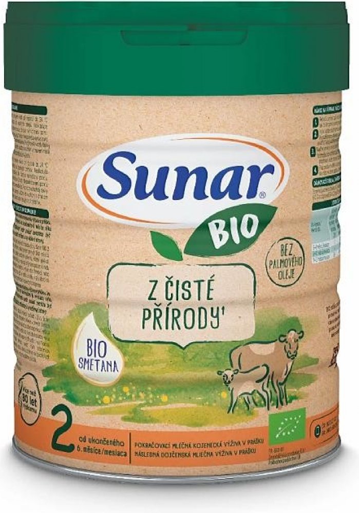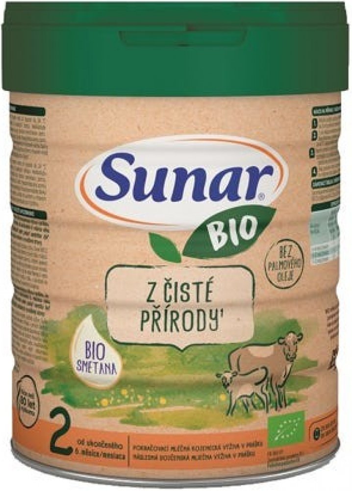 - Sunar BIO 2, pokračovací kojenecké mléko v balení 700 g