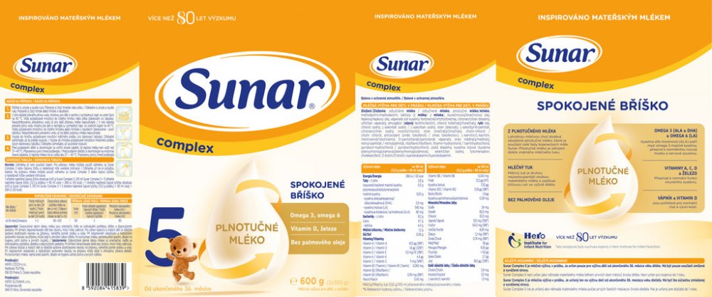 U dětí do 5 let je stále potřeba dbát na optimální a vyváženou stravu, aby obsahovala vitamíny a minerální látky a to především železo a zinek, jenž pomáhají normálnímu/zdravému vývoji dítěte. Sunar complex navíc obsahuje mléčný tuk, který je významným zdrojem energie a je také důležitý pro vstřebávání vitamínů. Děti nepotřebují již doplňky stravy a vitamíny v jiné form...