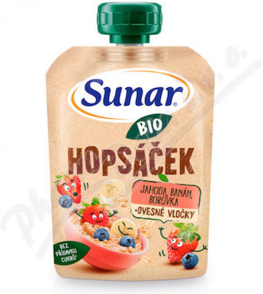 Sunar BIO kapsička Hopsáček je lahodná kombinace ovocného pyré a ovesných vloček v BIO kvalitě, která zažene hlad a dodá dlouhotrvající energii na hopsání po celý den. Bez přidaného cukru. Pro děti od ukončeného 12. měsíce.