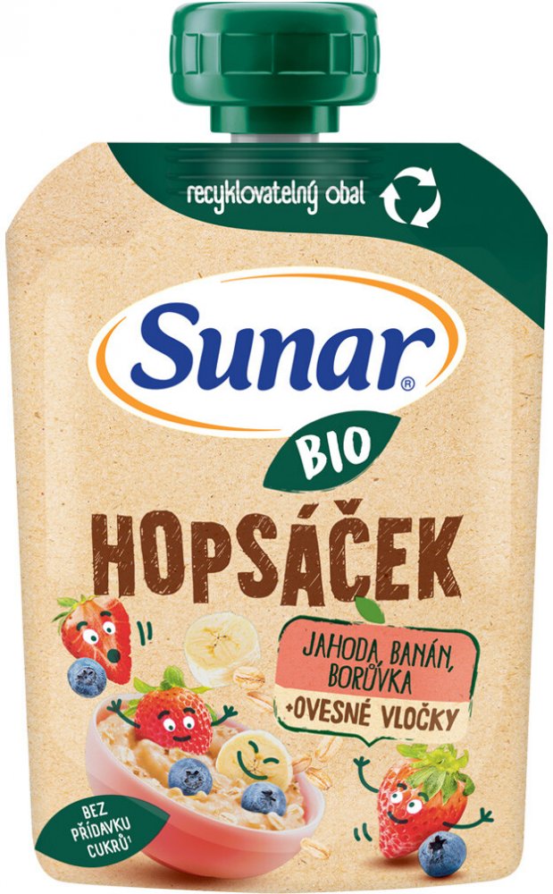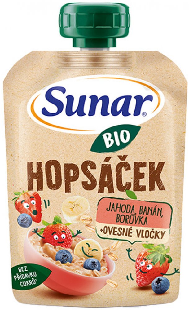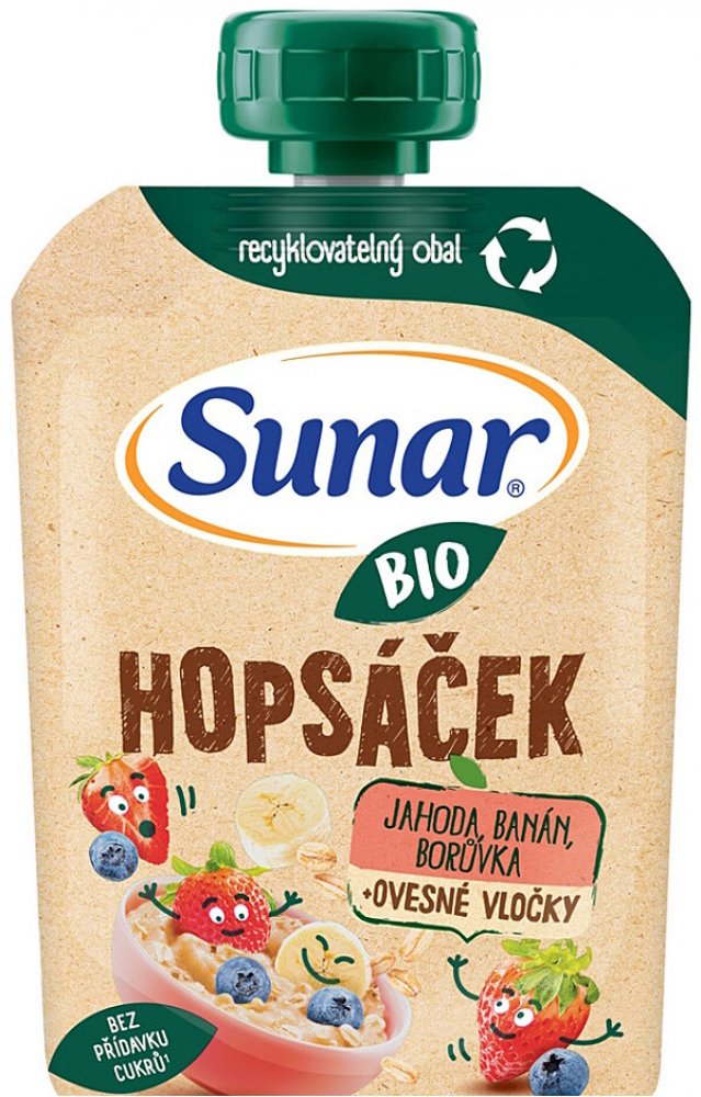 Sunar BIO Hopsáček je kapsička kombinující ovoce a ovesné vločky, která dodají dlouhotrvající energii malým dětem na jejich rošťárny.