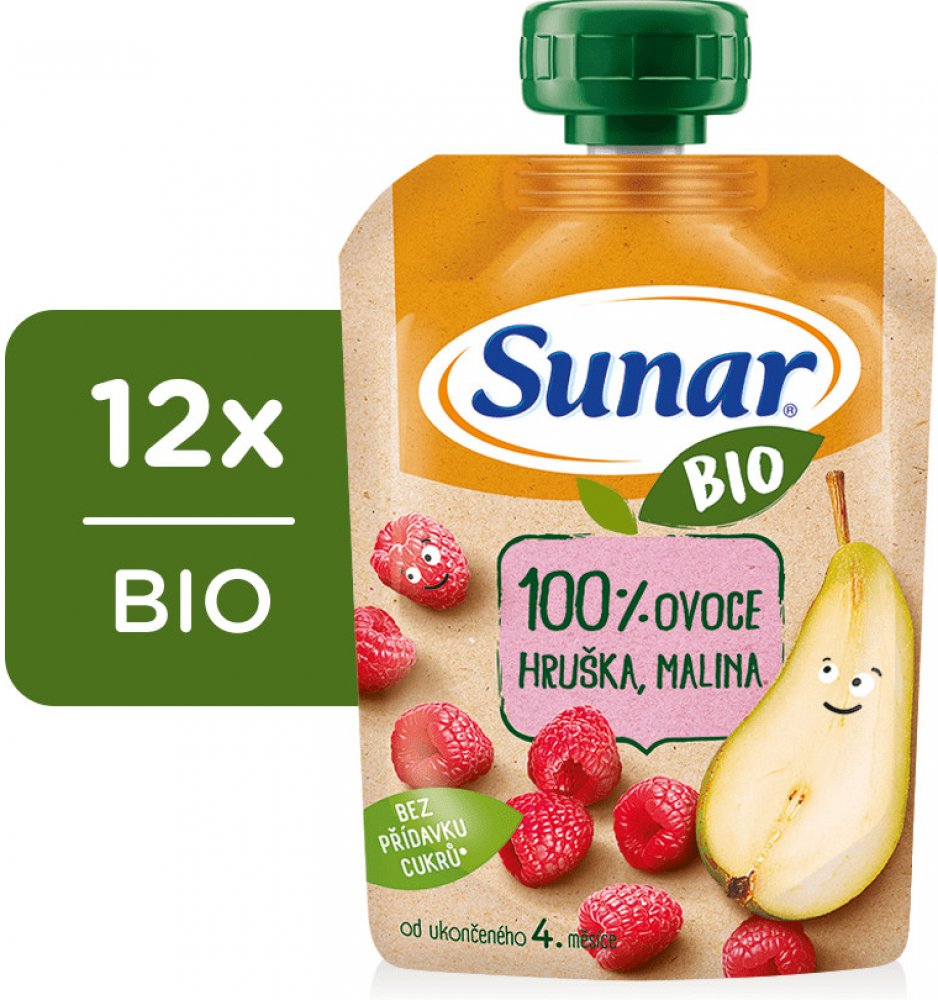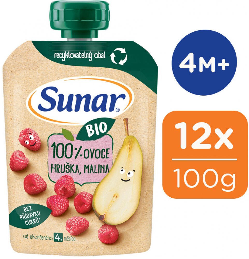 4. měsíce věku. Neobsahuje přidaný cukr. Sunar BIO je ovocná kapsička