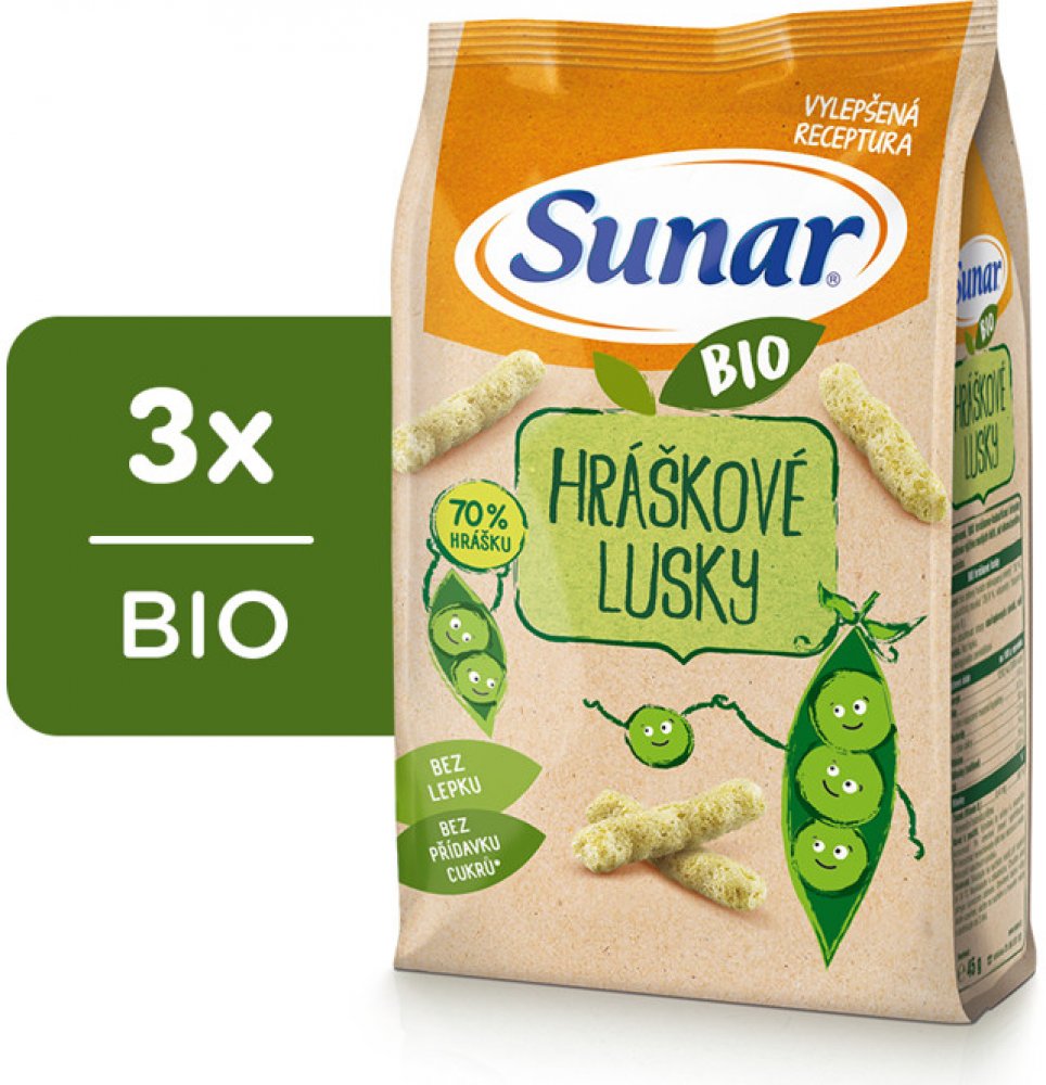 Sunar BIO křupky Hráškové lusky 3 x 45 g
