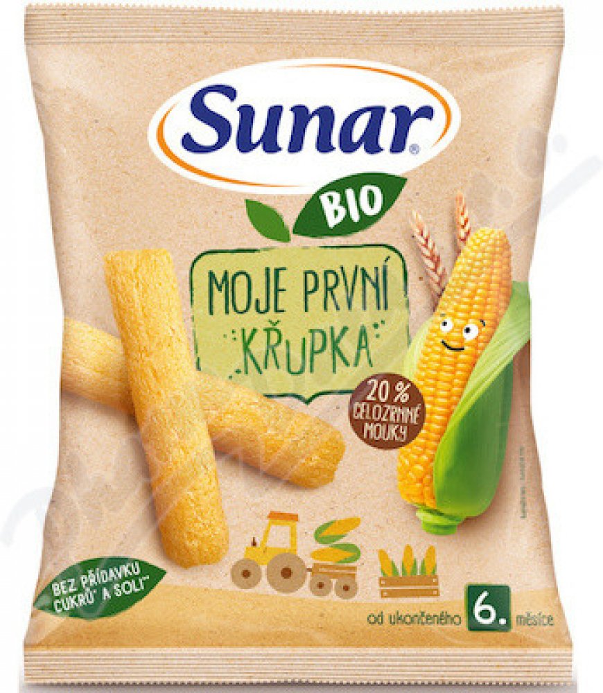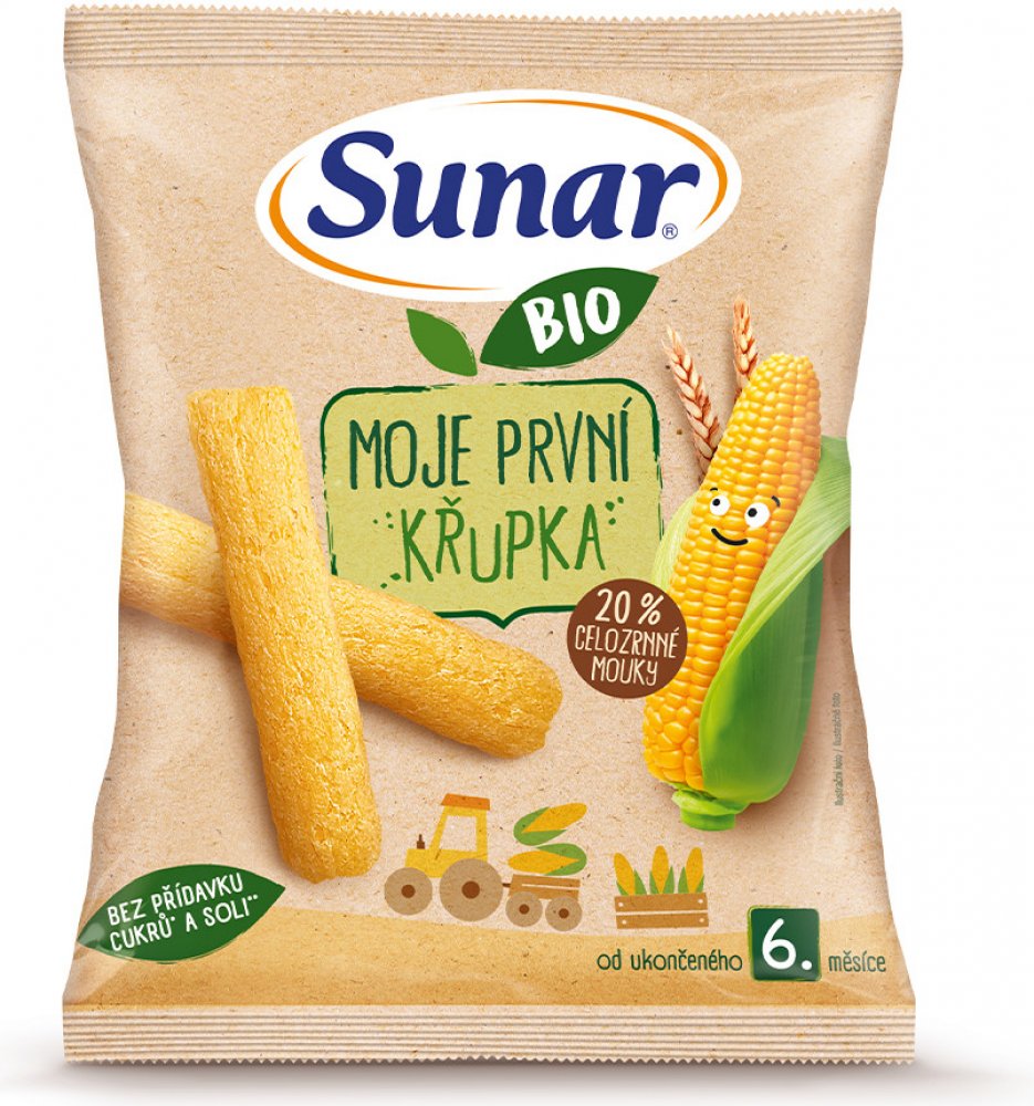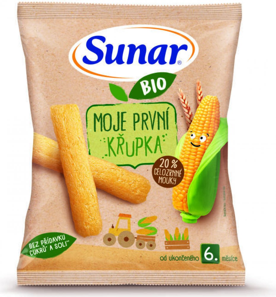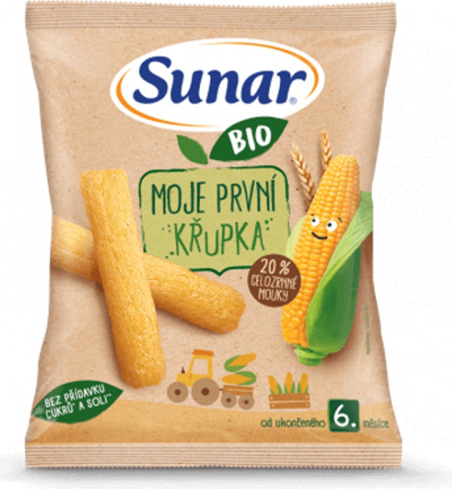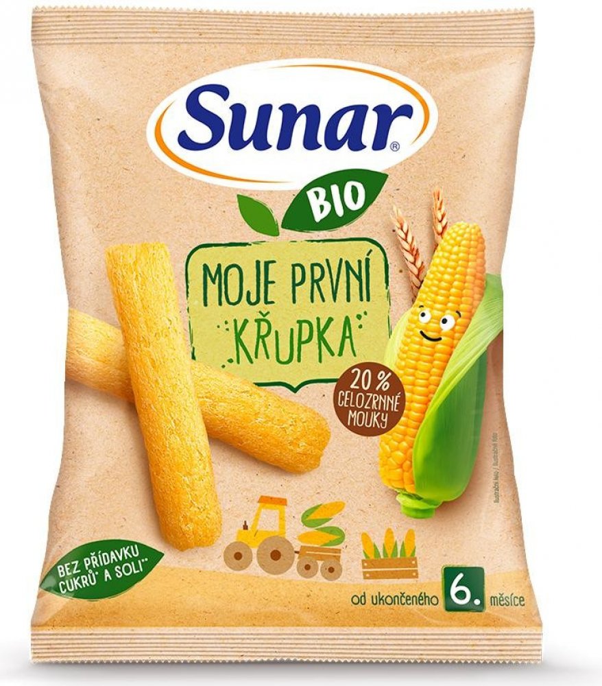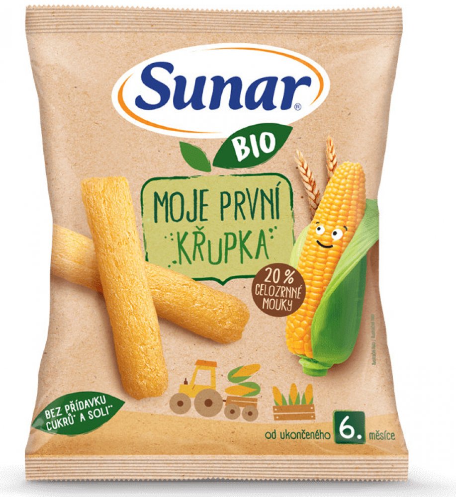 Sunar BIO křupky jsou výbornou svačinkou pro ty nejmenší děti. Obsahují až 20% celozrnné cereální mouky a jsou proto vhodné pro seznámení s lepkem ve výživě. Samozřejmostí je složení bez přidaného cukru a soli. Jejich unikátní tvar je přímo uzpůsobený malým dětským ručičkám pro snadné uchopení a psychomotorický rozvoj dítěte. Kontrolovaný původ potravin a pěstování v nejvyšší baby kvalitě.