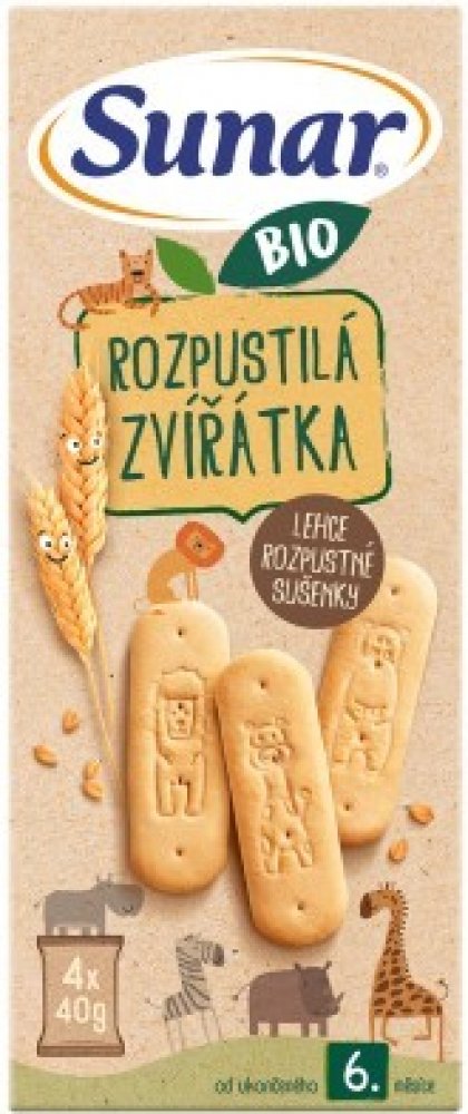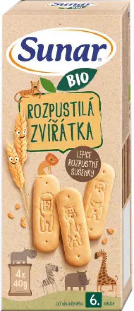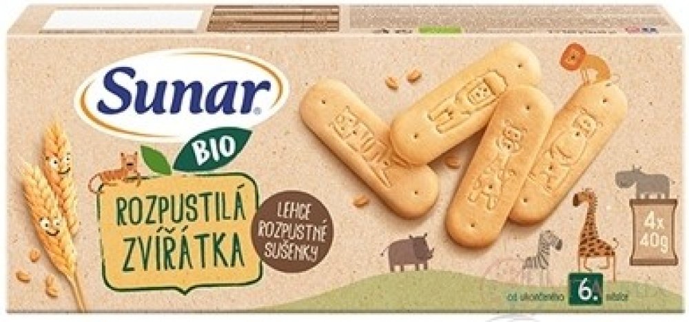 Sunar BIO Rozpustilá zvířátka sušenky 4 x 40 g