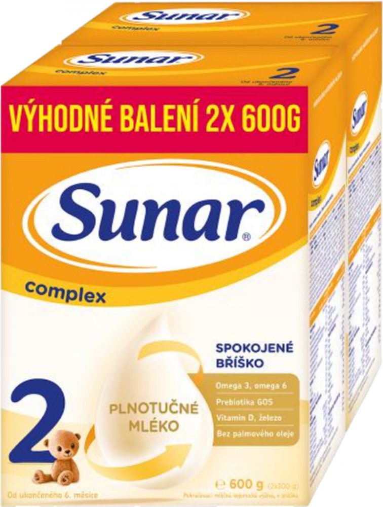 Sunar complex 2 je výrobek pokračovací kojenecké mléčné výživy. Je určen pro výživu kojenců od ukončeného 6. měsíce věku dítěte v období odstavování nebo pokud nemohou být kojeni. Má být pouze součástí smíšené stravy kojence.