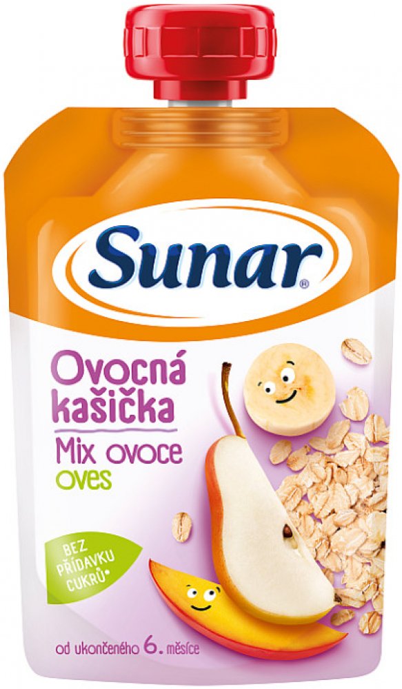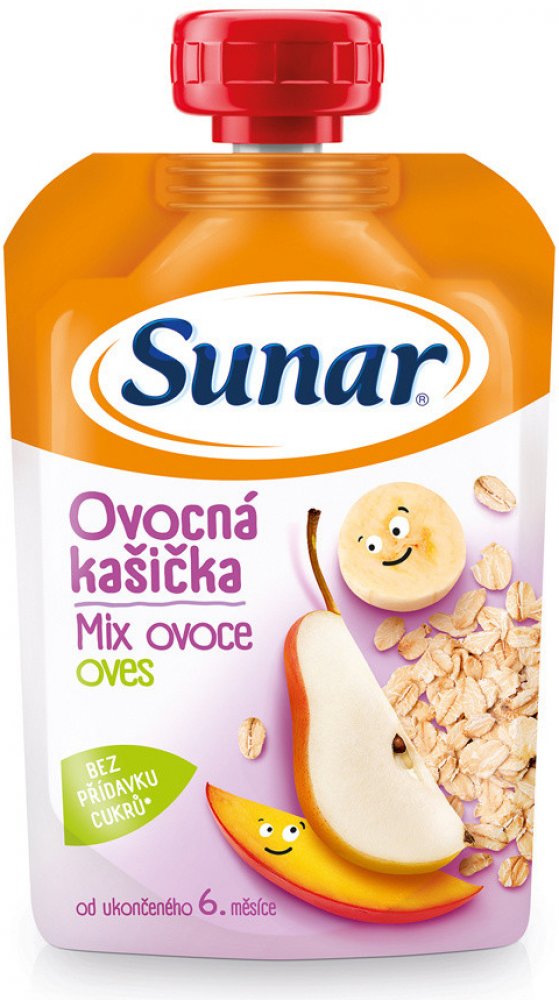 Spodní hranice věkového omezení: 6 měsíců Loga třetí strany: Zelený bod Standardizovaná značka: Sunar Životní styl: Bez přídavku cukru Regulovaný název výrobku: Ovocná kašička hruška, mango, banán, oves. Ovocno obilná přesnídávka, nemléčná, pasterovaná. Vhodná pro kojence od ukončeného 6. měsíce. Druh balení: Kapsička