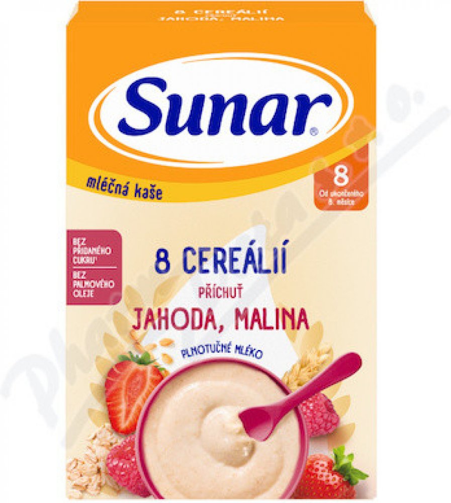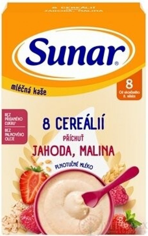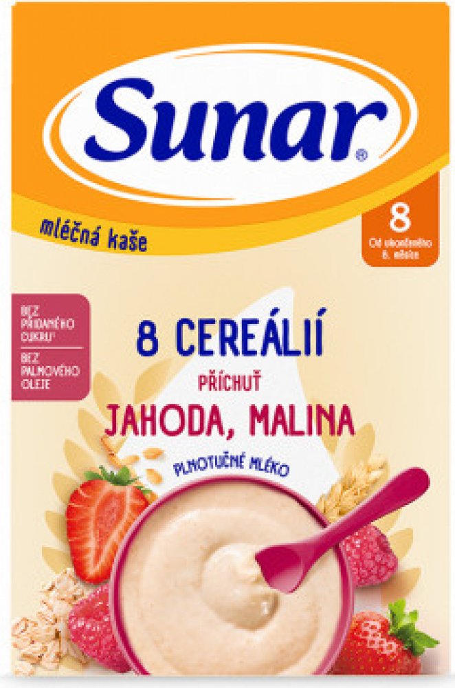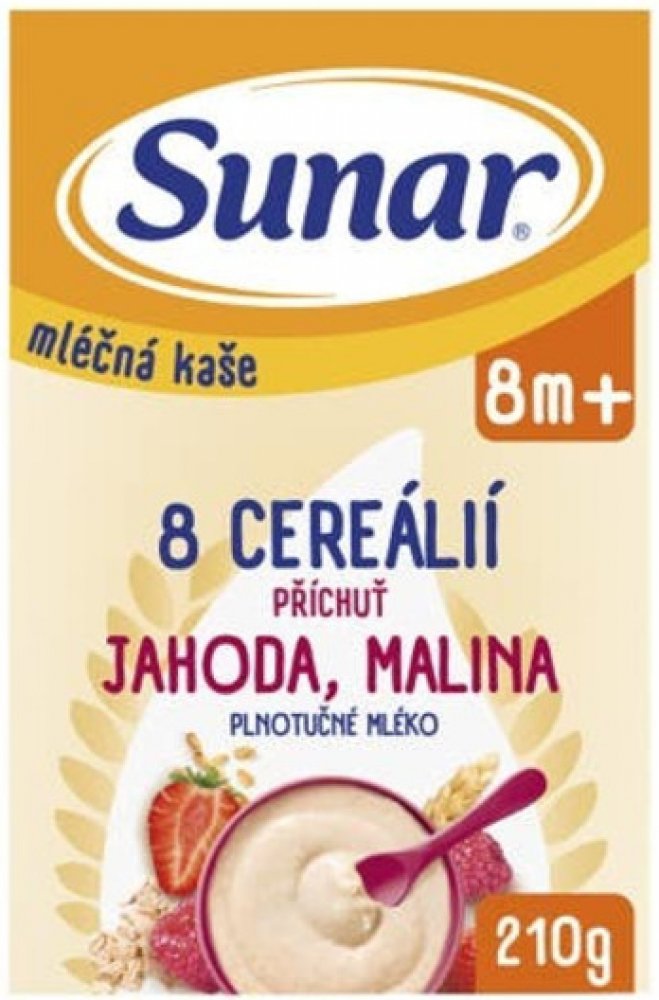 Sunar mléčná kaše 8 cereálií jahoda malina 210 g