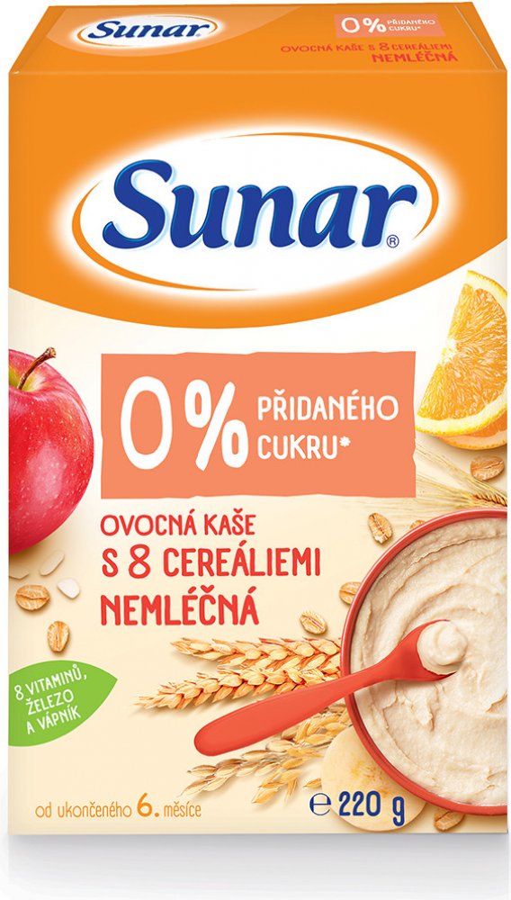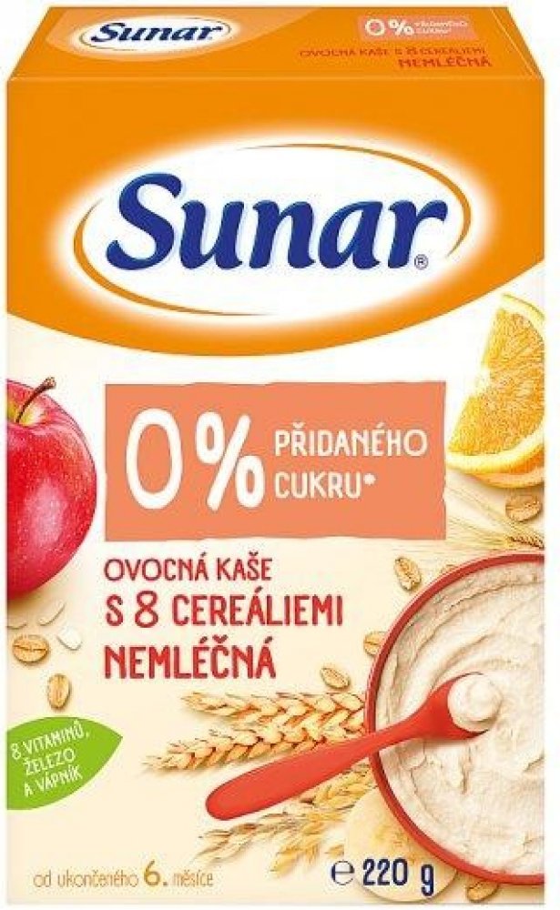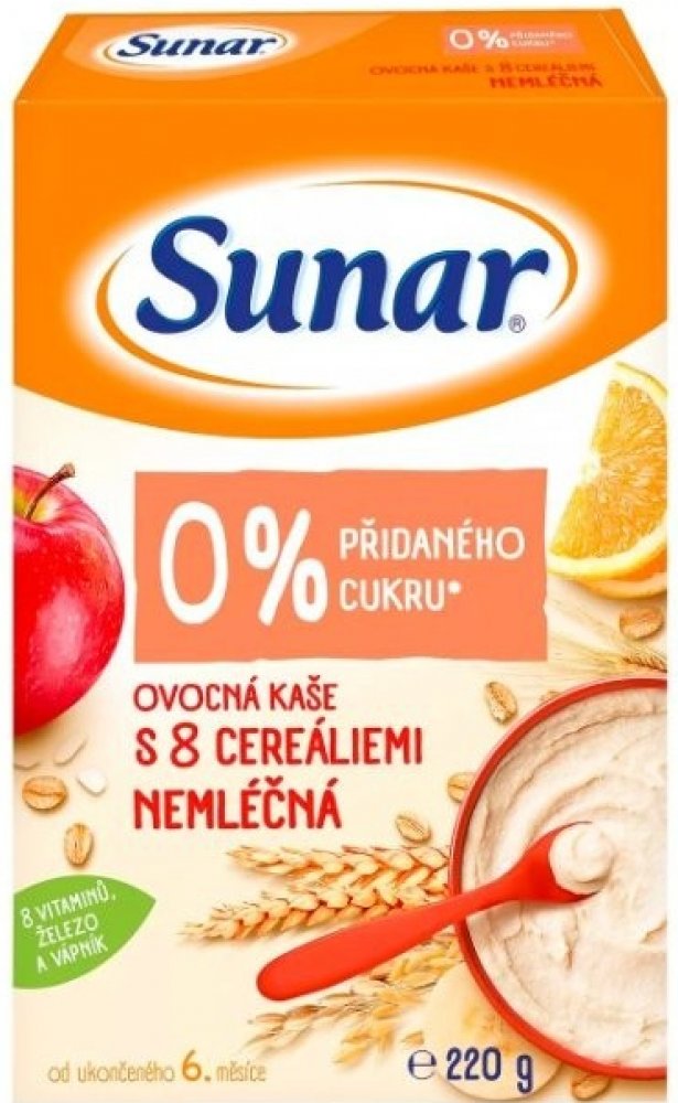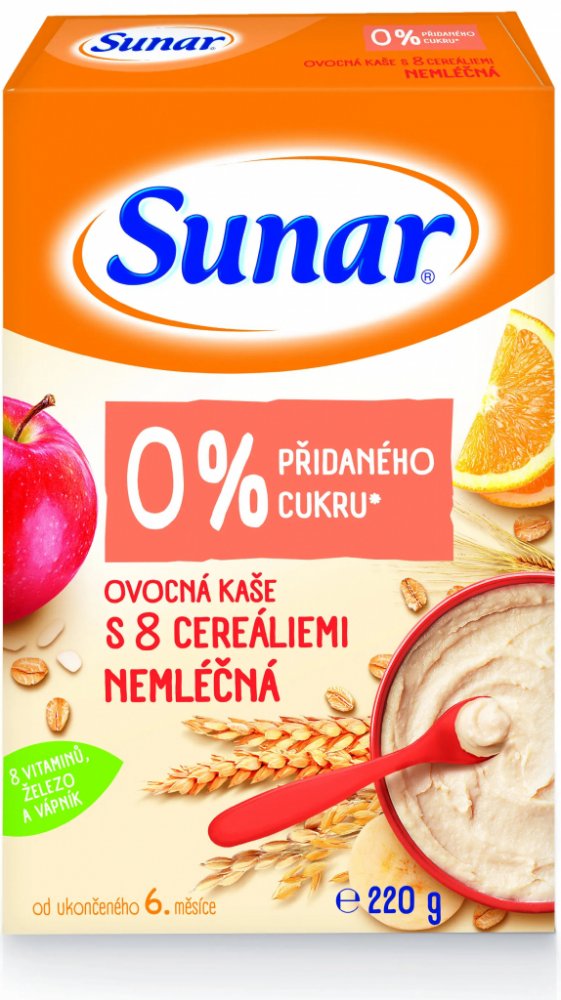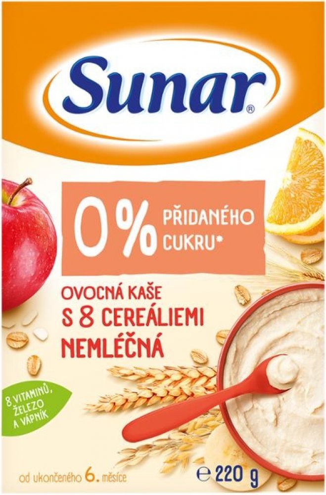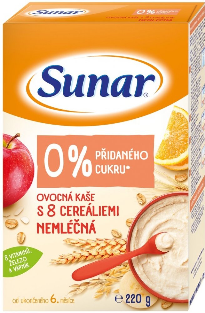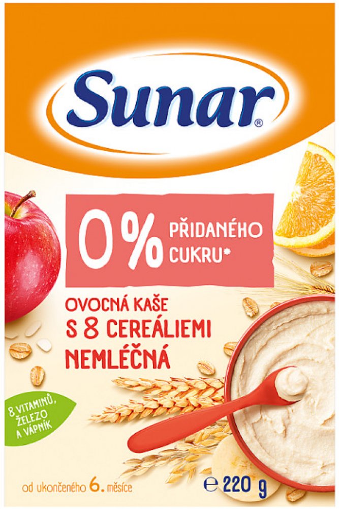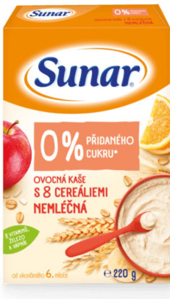 Sunar nemléčná kaše 8 cereálií ovocná 220 g