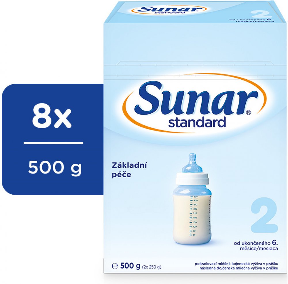 Toto zboží exspiruje 11.04.2022 Kojenecká mléka Sunar Standard mají vyvážené složení, které odpovídá výživovým požadavkům kojenců dle platné legislativy EU pro oblast dětské výživy. Všechny nutriční složky včetně mléčného tuku jsou zde obsaženy v požadovaném množství a poměru. Od ukončeného 6.měsíce. Složení: Odtučněné mléko, laktóza (z mléka), maltodextrin, smetana (obsahuje mléčný tuk), slunečnicový olej, koncentrát syrovátkové bílkoviny (z mléka), kokosový olej, galaktooligosacharidy (GOS) (z mléka), řepkový olej, citronan draselný, vápenaté soli kyseliny fosforečné, rybí olej, chlorid hořečnatý, emulgátor (sójový lecitin), cholin chlorid, chlorid sodný, L-askorbát sodný, citronan sodný, taurin, síran železnatý, L-askorbyl-6-palmitát, inositol, L-karnitin, D-α-tokoferol, síran zinečnatý, nikotinamid, D-pantothenát vápenatý, síran měďnatý, retinyl palmitát, riboflavin, thiamin-hydrochlorid, pyridoxin-hydrochlorid, jodid draselný, síran manganatý, kyselina listová, seleničitan sodný, fytomenadion, D-biotin, cholekalciferol, kyanokobalamin.